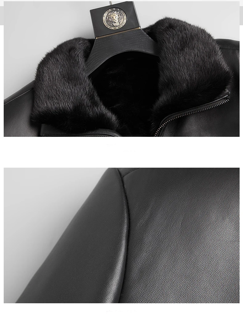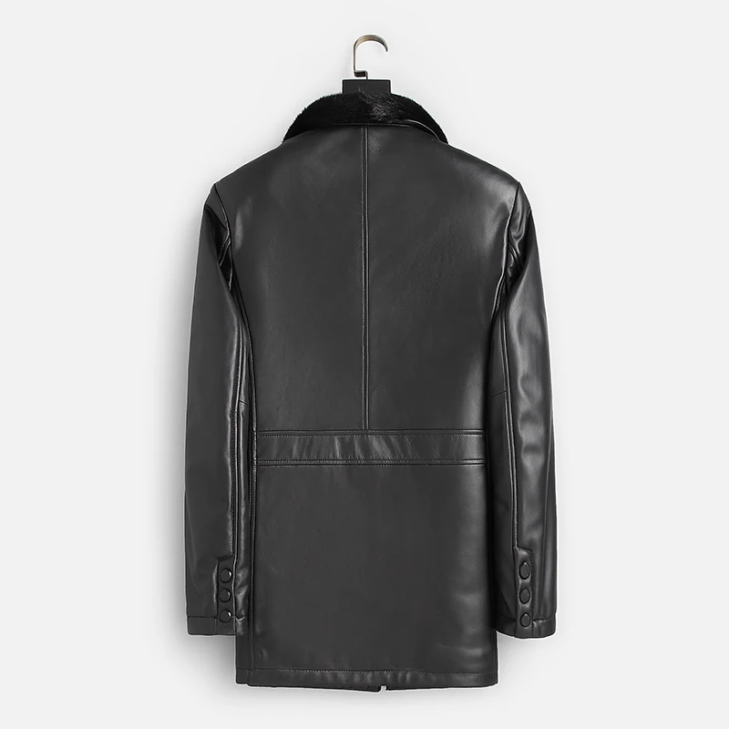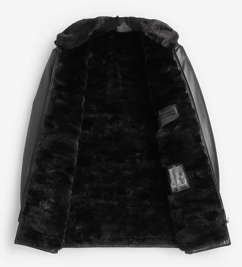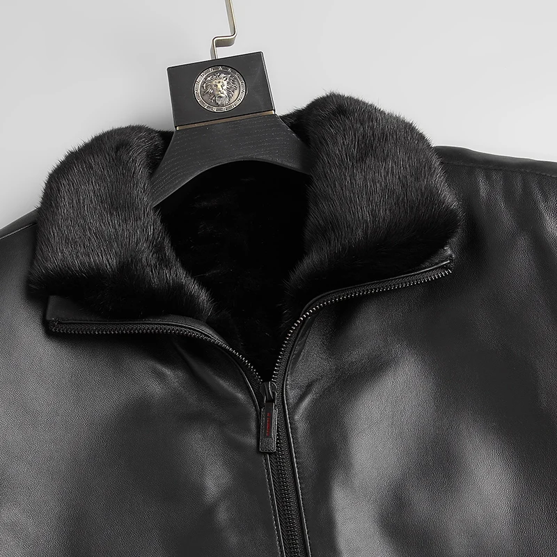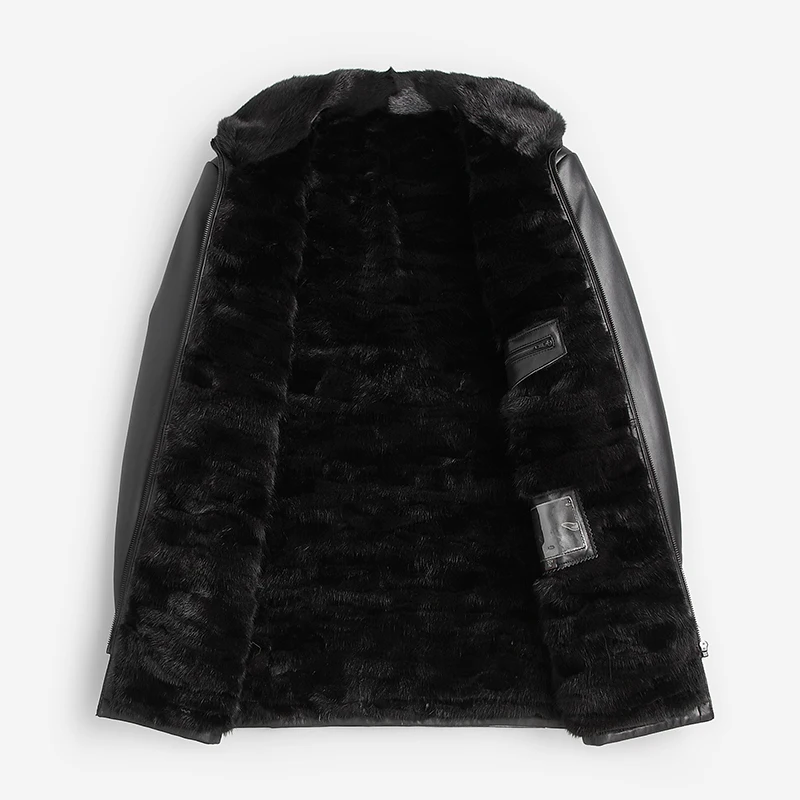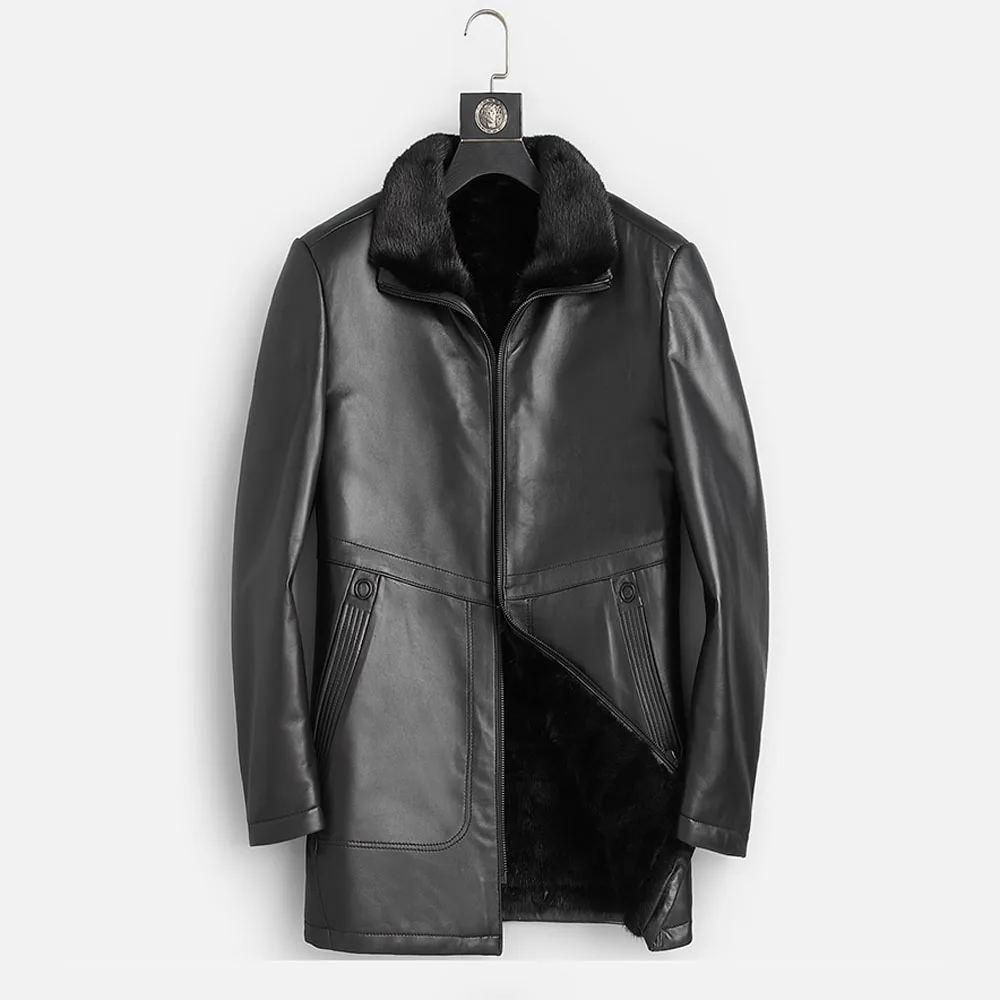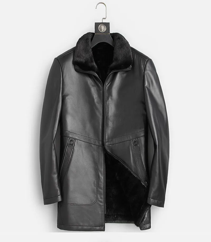 Мужская зимняя шуба из натурального меха норки, черная теплая шуба средней длины из натуральной кожи