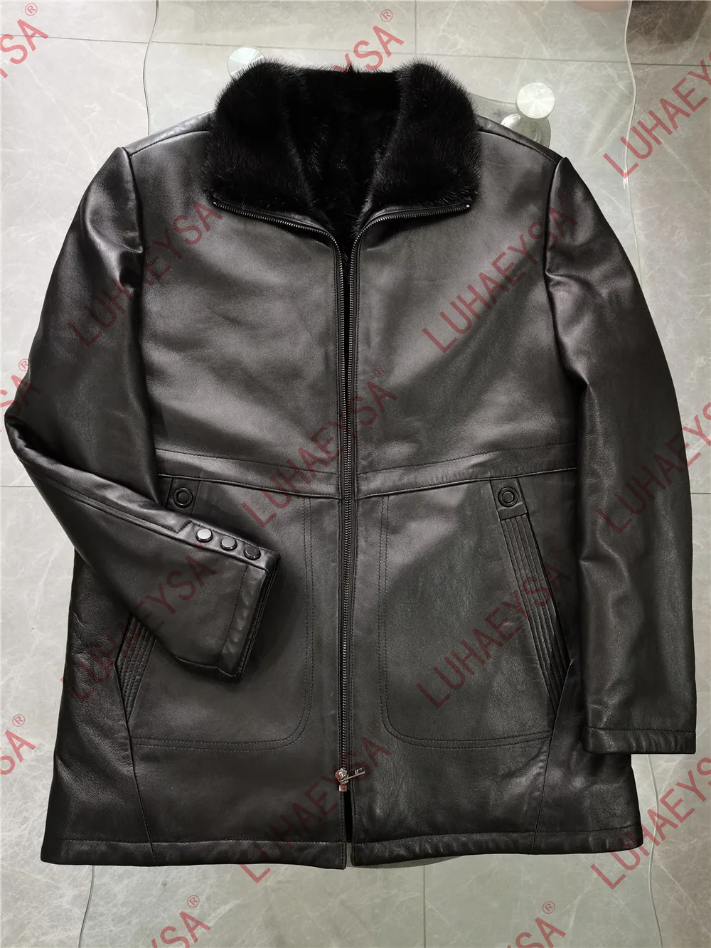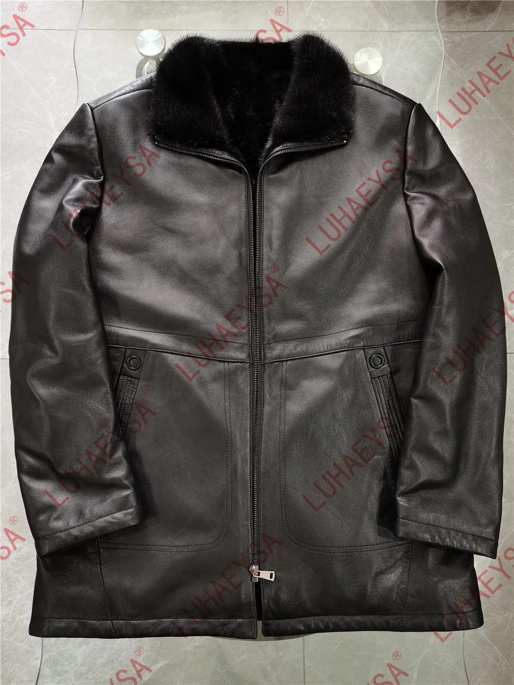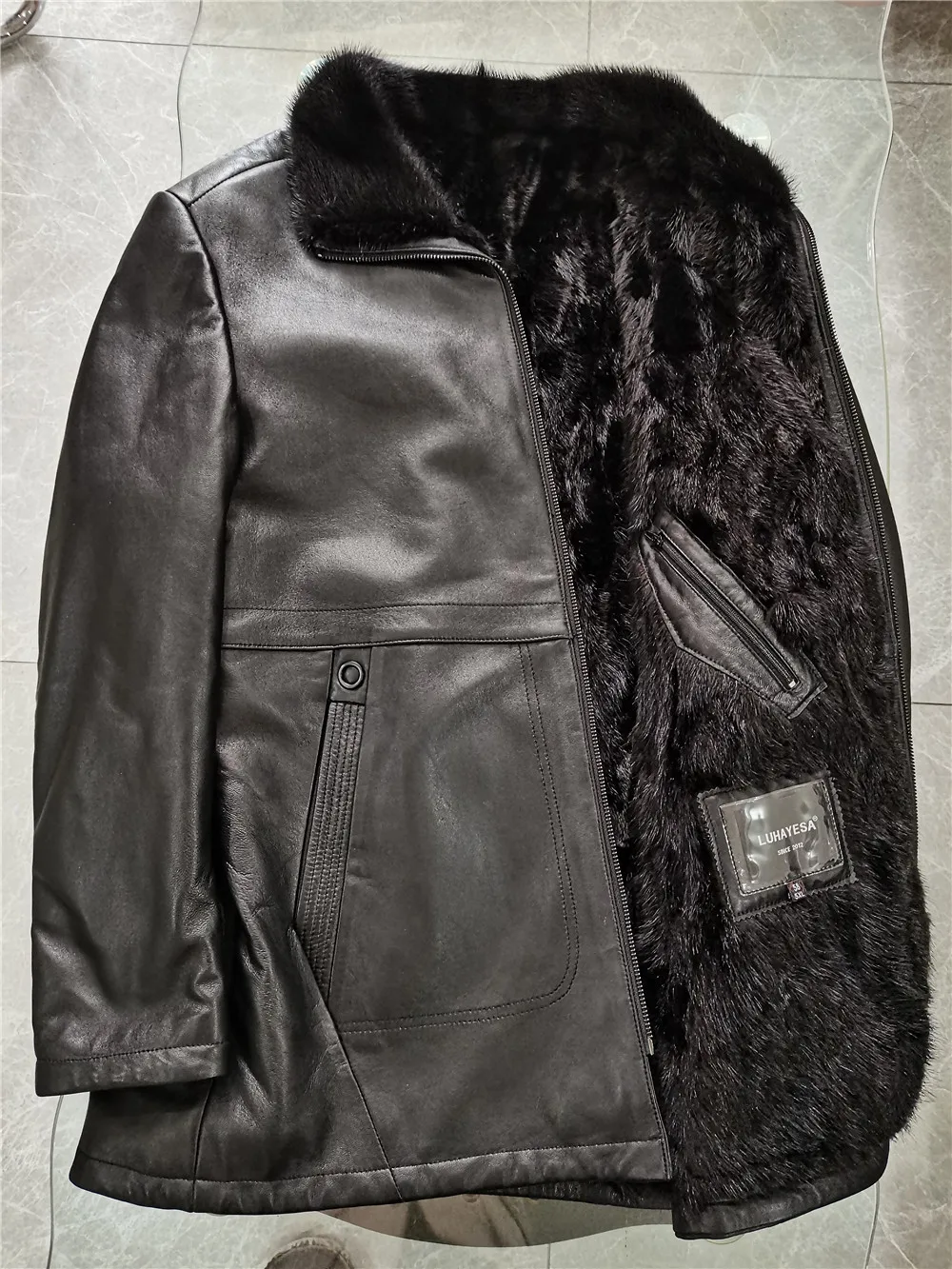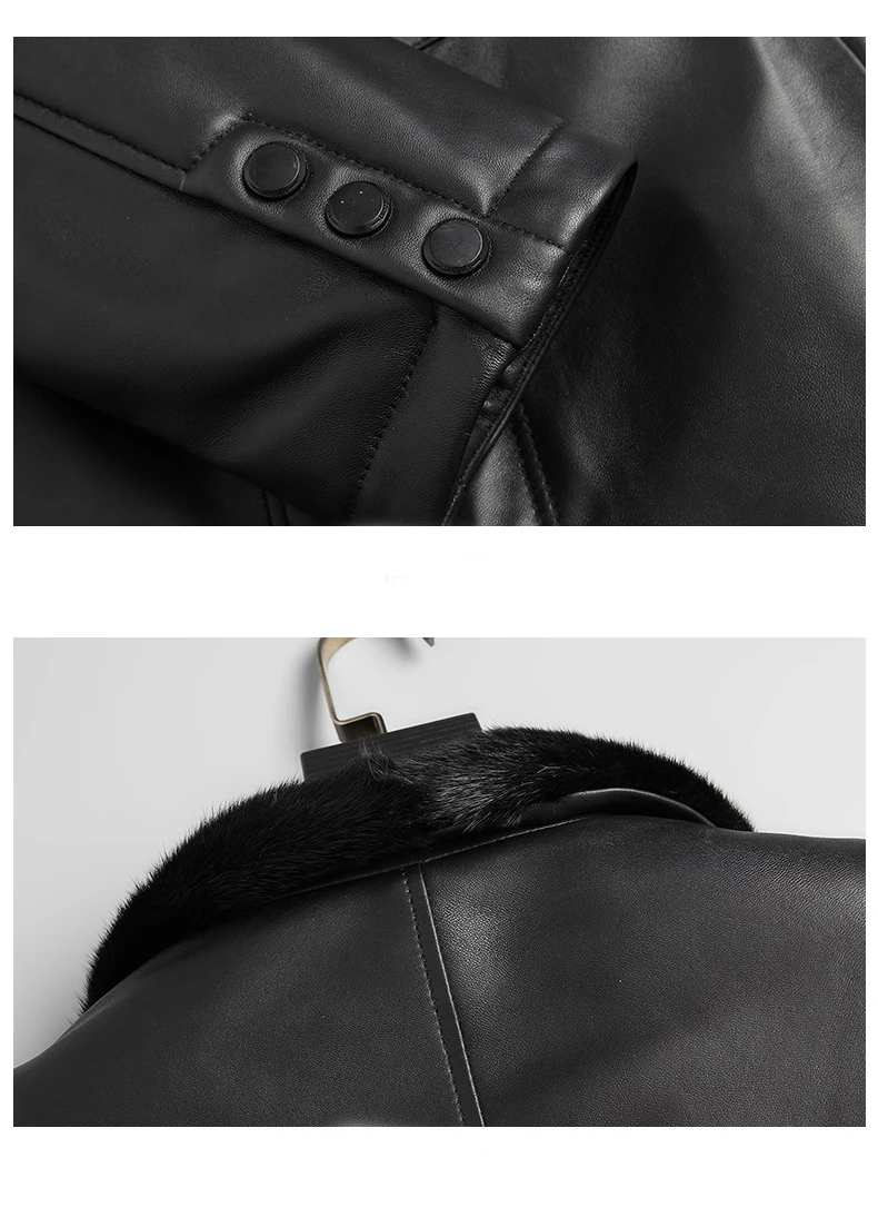 Мужская зимняя шуба из натурального меха норки, черная теплая шуба средней длины из натуральной кожи