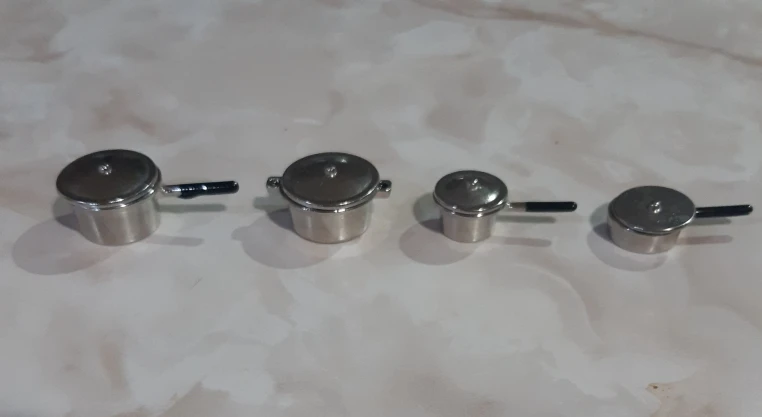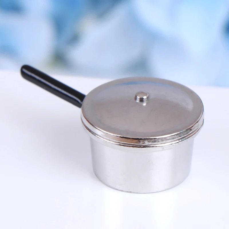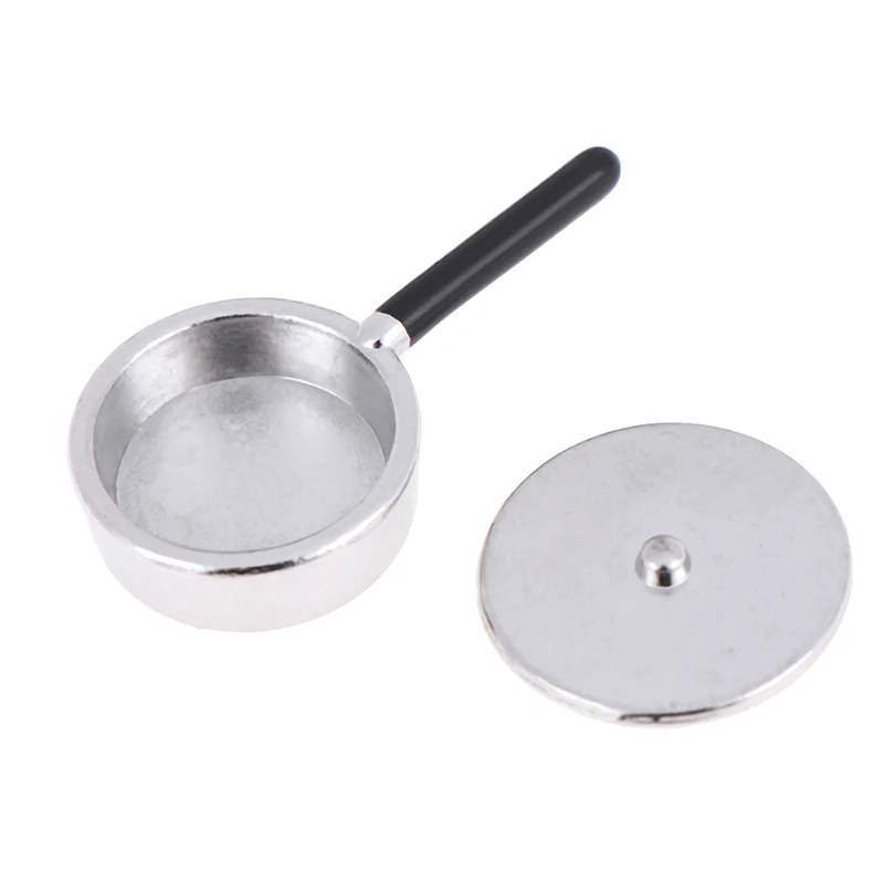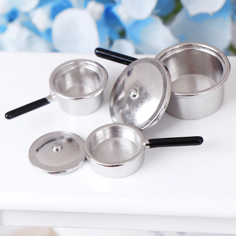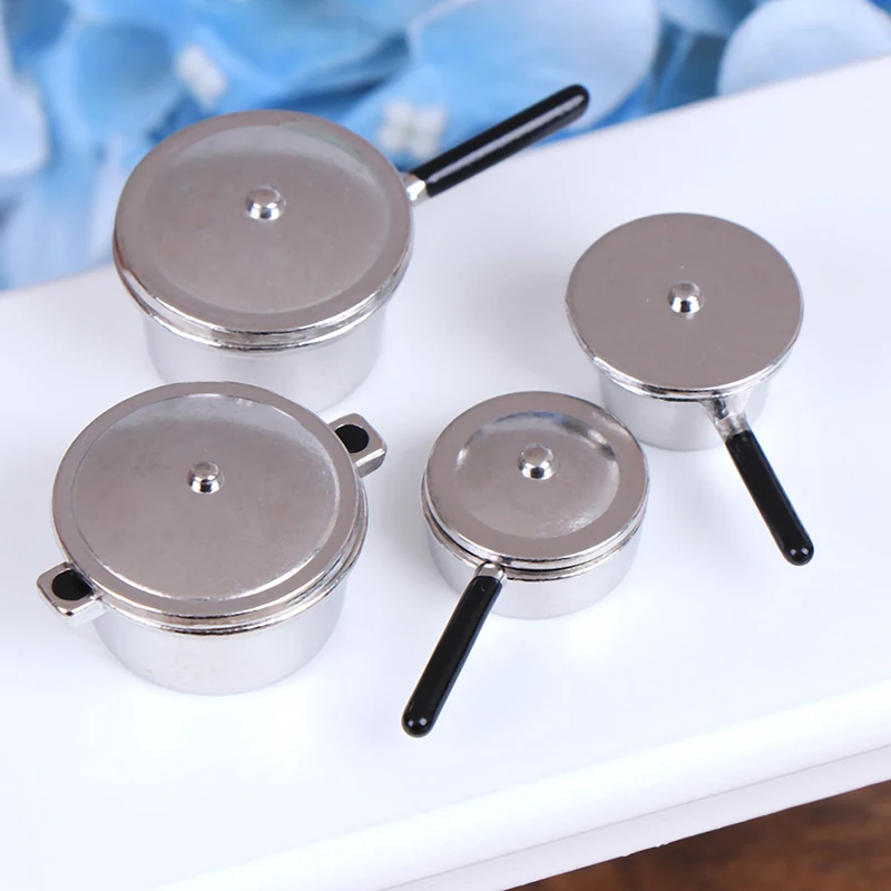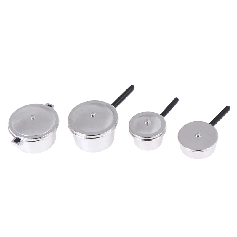 Металлические Мини-кастрюли и сковороды 1:12, 4 шт., миниатюрное кухонное украшение, миниатюрная Серебряная сковорода для супа, Миниатюрные аксессуары для кукольного домика