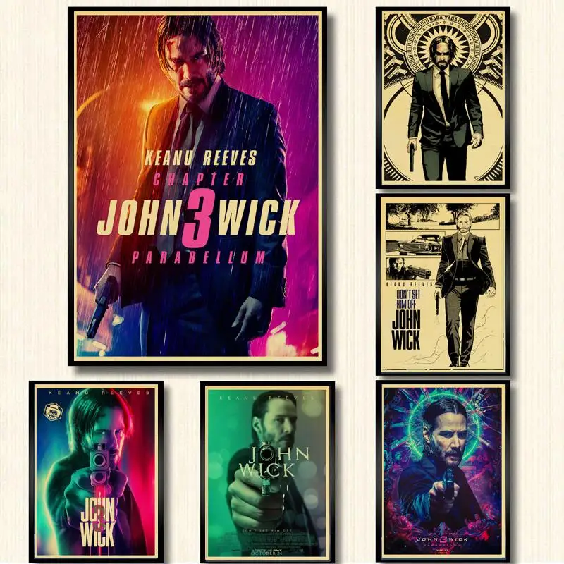 Винтажные постеры из крафтовой бумаги John Wick в классическом стил...