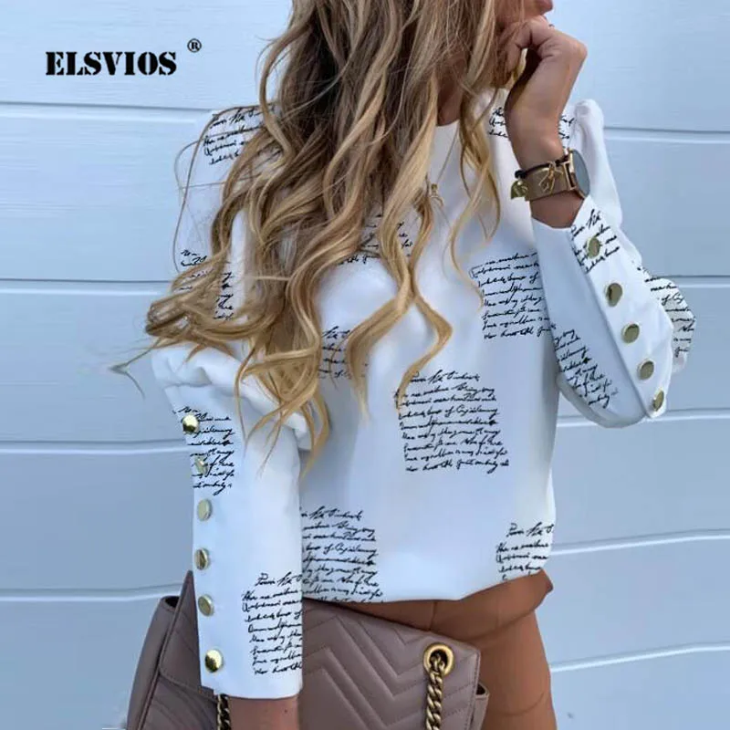 3XL Женская блузка с металлическими пуговицами на спине, Офисная Женская Повседневная Однотонная рубашка с круглым вырезом и длинными рукавами, топы, элегантный осенний пуловер, Прямая поставка