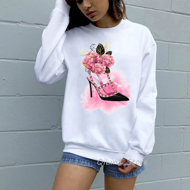 Женская толстовка на высоком каблуке, с принтом губ и помады