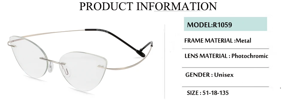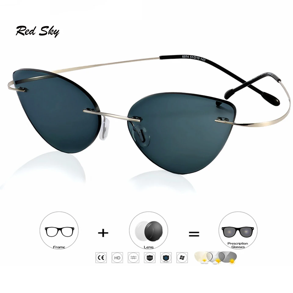 Очки для чтения кошачий глаз, фотохромные, сверхлегкие очки без оправы, солнцезащитные очки с переходом Tiantium, очки с пребиопическими стеклами + 1,00, + 1,50, + 2,00