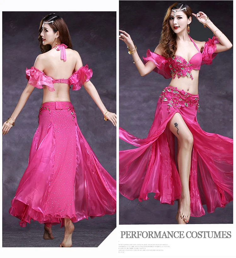 Женские костюмы для танца живота, комплект из 23 предметов, юбка для восточных танцев живота, юбка с поясом для бюстгальтер для выступления, одежда для танца живота