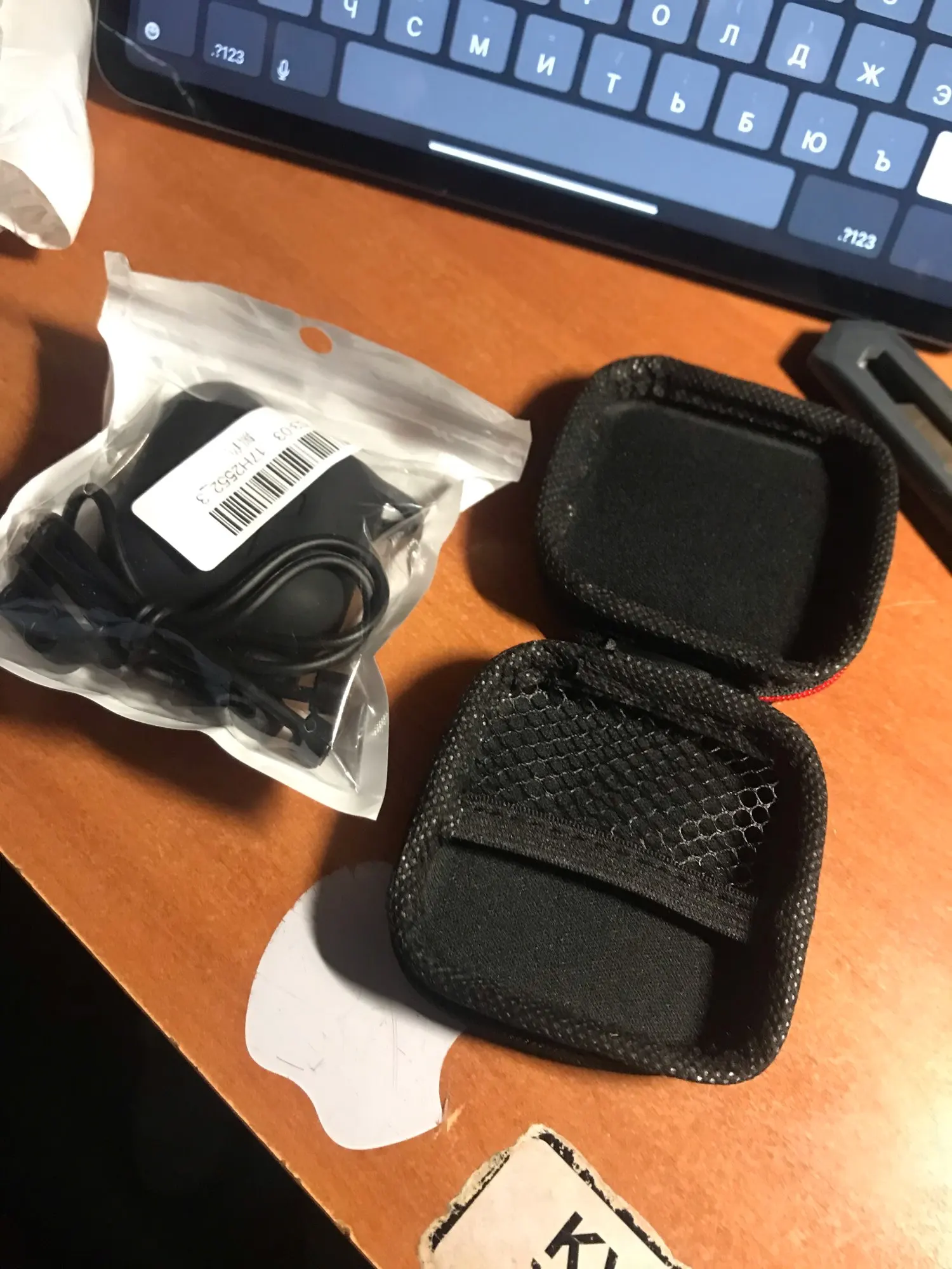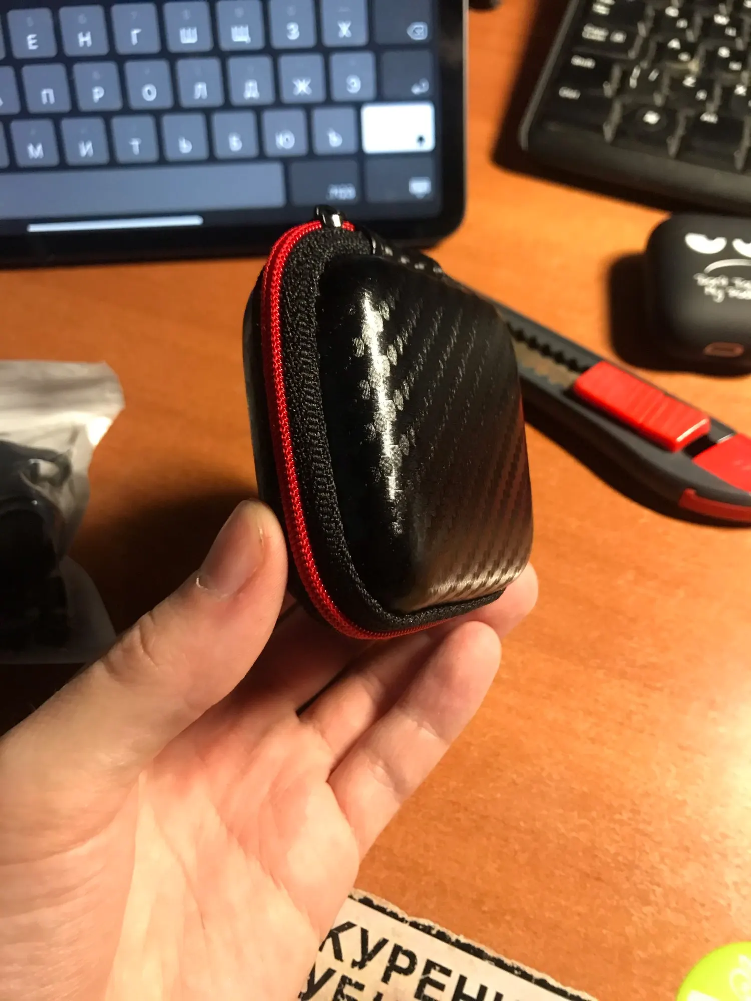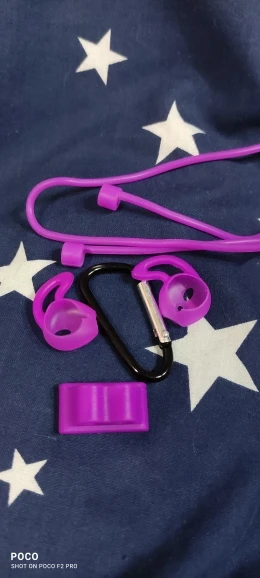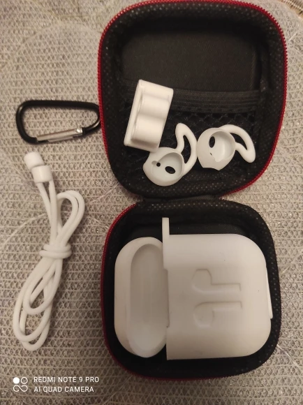 Карабин кривой (см.фото). Шнурок держит крепко, не сорвать, только если потерять вместе со шнурком. Чехол силиконовый с характерным запахом (несильным). Вкладыши сели не очень ровно. По кейсу с молнией претензий нет. За свою цену норм. Дошло до Республики Коми за 12 дней в составе объединённой посылки, трек отслеживался.