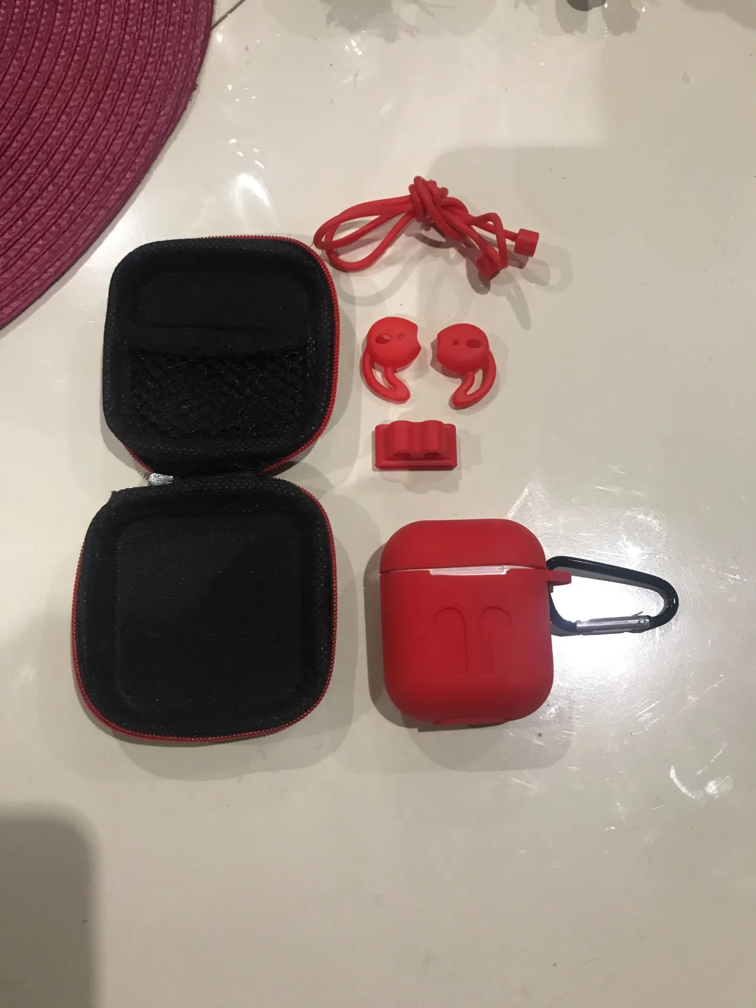 Хороший качественный набор для наушников. Заказали 27.10, а 14.11 уже посылка была на почте. Упаковано хорошо, все целое. Чехол из плотной резины, не хлипкий. Сам бокс наушников в чехол сел прям отлично, не болтается. В держатель для часов наушники тоже прям плотно вставляются, с усилием. Рекомендую!