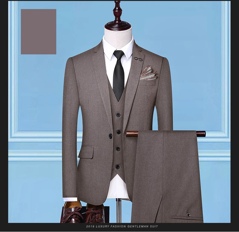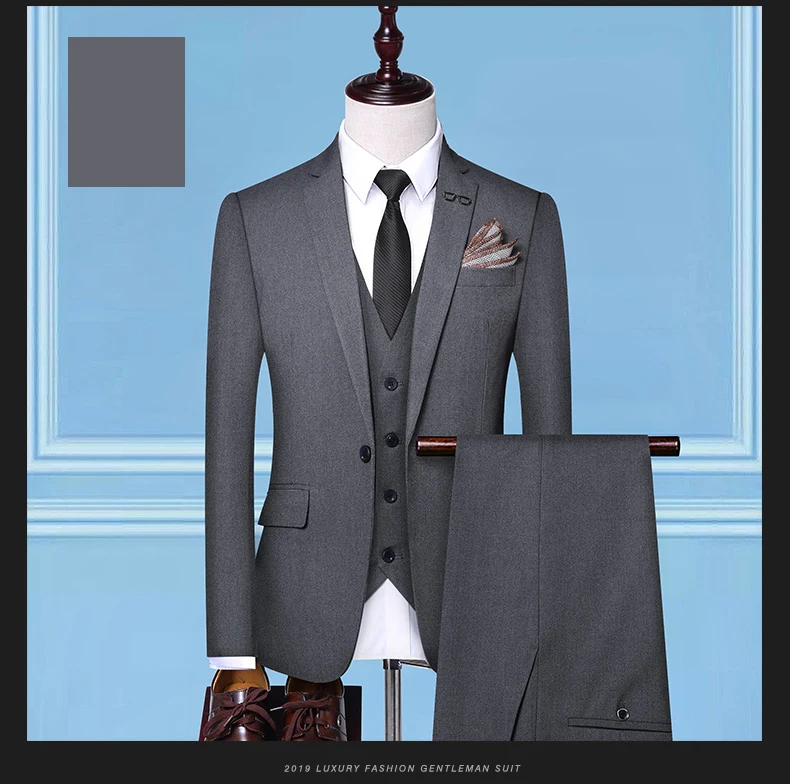 (Пиджак + жилет + брюки) Мужской приталенный деловой костюм Мужская...