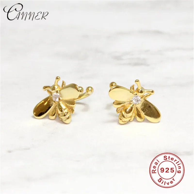 Женские винтажные серьги-клипсы CANNER, корейские серьги-пусеты с животным медом и Пчелой из стерлингового серебра 925 пробы, подарочные серьги-пусеты