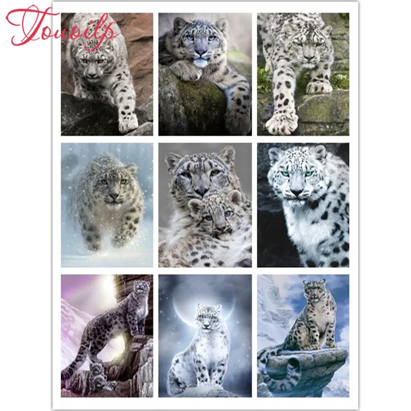Алмазная 5D Вышивка TOUOILP, картина из квадратных и круглых страз сделай сам, с изображением снежного леопарда, вышивка крестиком, мозаика Стразы
