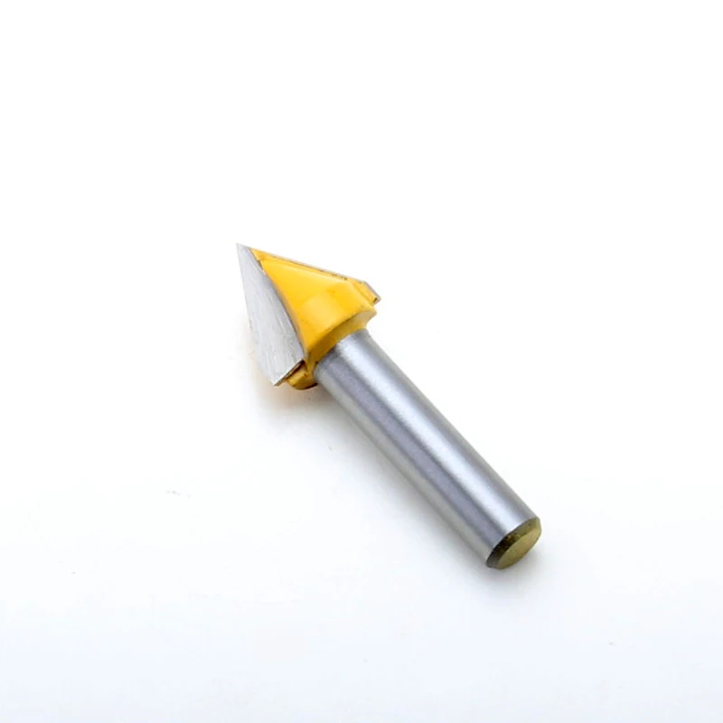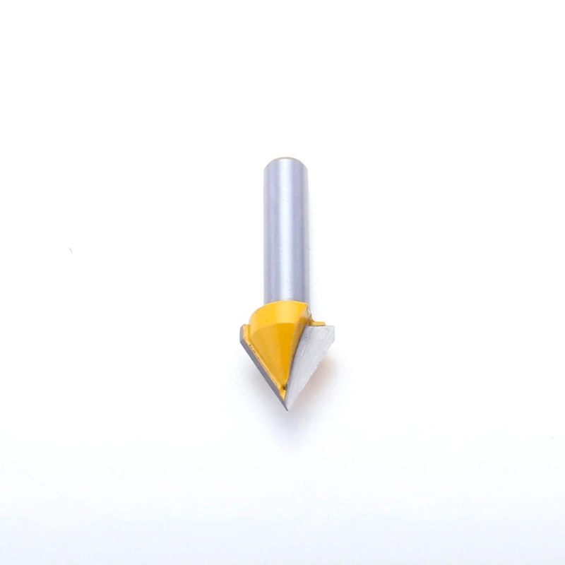 Используйте CHWJW 14993q 60 ° V паз маршрутизатор бит для канавки и signmaking. Два Флейта карбида фрезы и 8 мм шанки. Характеристики бит Материал: Твердосплавный Наконечник Количество бит: 1 Размер хвостовика: 8 мм Диаметр резки: 1/2" Длина резки: 5/8" Общая длина: 1-3/4" Самый большой диаметр: 1/2" Градусы: 60 ° Количество флейтов: 2