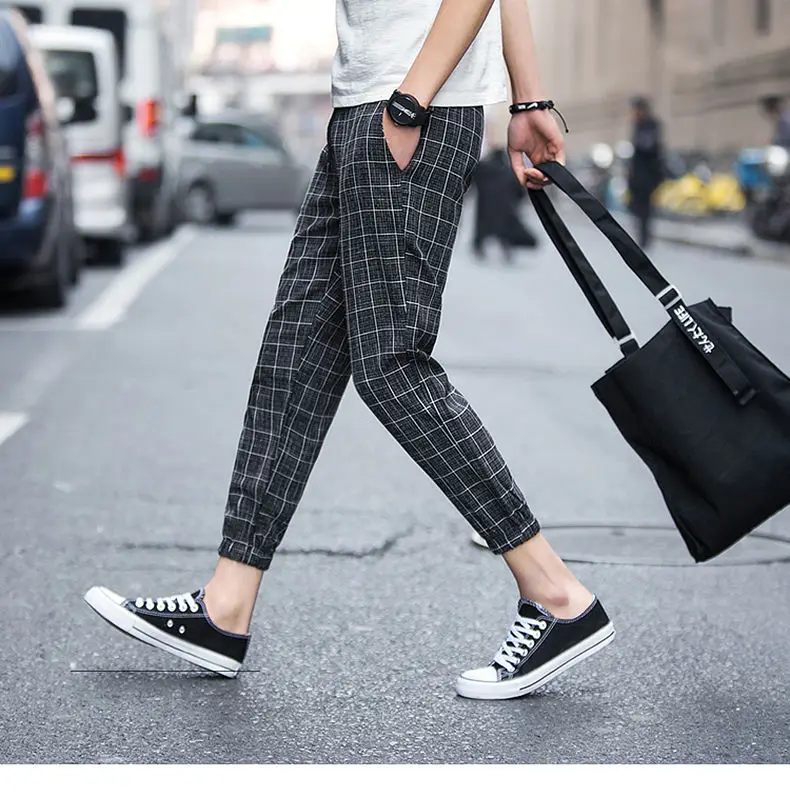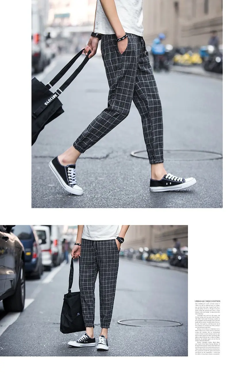 Джоггеры мужские в клетку, хлопковые брюки, свободные повседневные ...