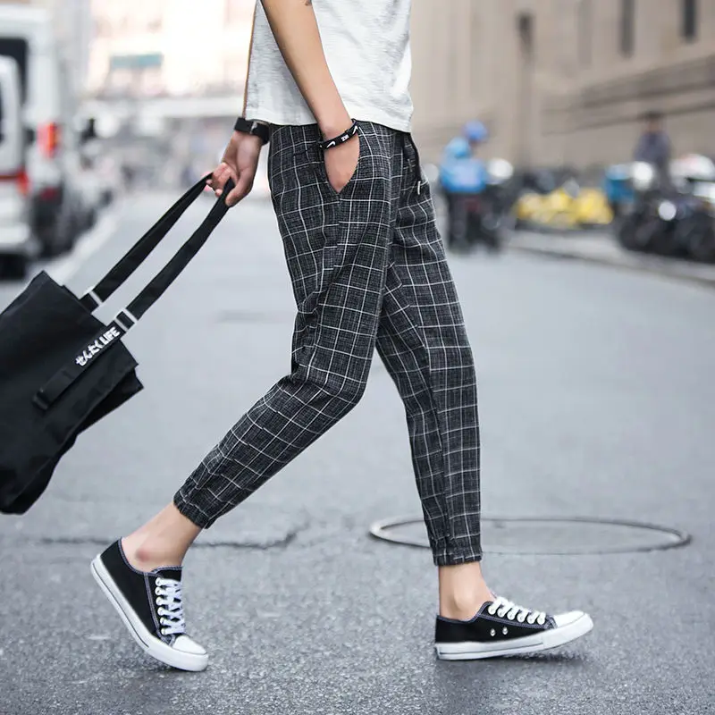 Мужские облегающие брюки в клетку, повседневные брюки-карандаш в Ко...