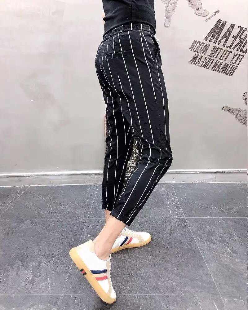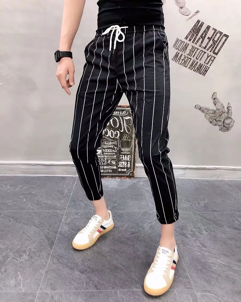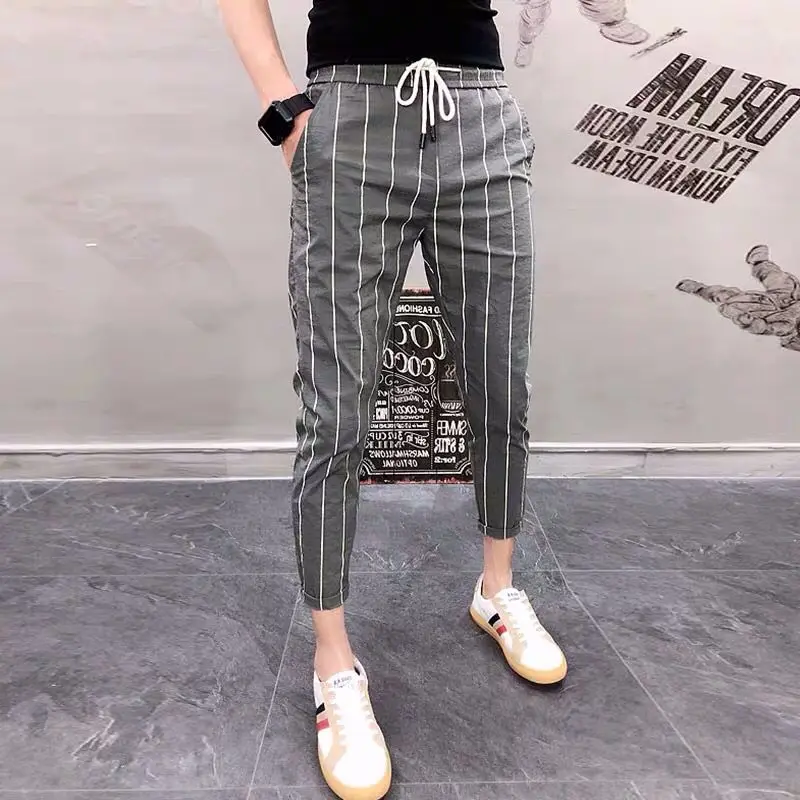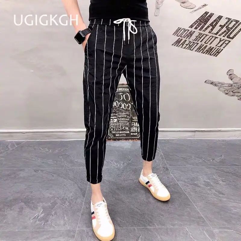 Мужские облегающие брюки в клетку, повседневные брюки-карандаш в Корейском стиле, новинка 2019