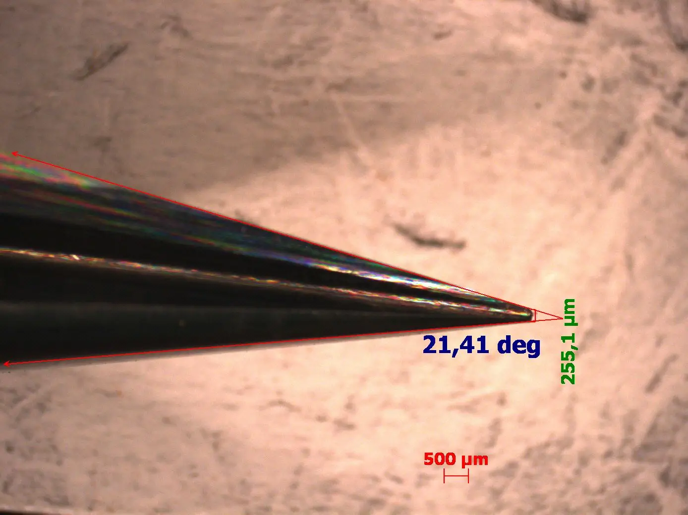 Этот наконечник на 0,5 мм выглядит больше как 0,3 мм, который сломал наконечник и нашлифовал или нарезал размер, наконечник имеет более 0,5 мм (0,63 мм для меня). Возможно, эти насадки сделаны так же, и после того, как они немного обрезают кончик, чтобы достичь размера. Но кончик не круглый и не плоский.