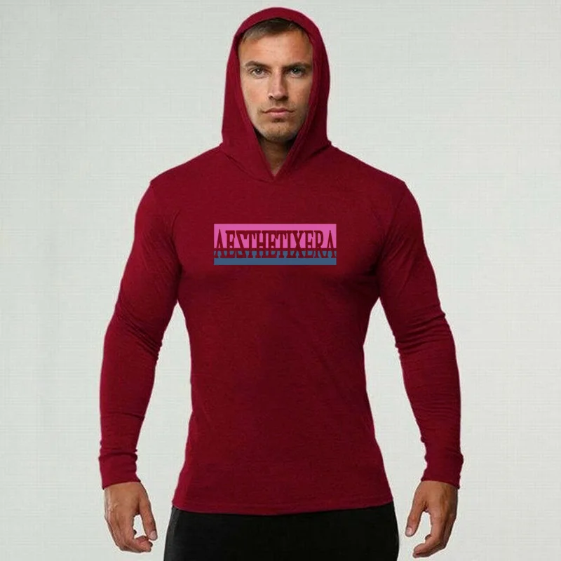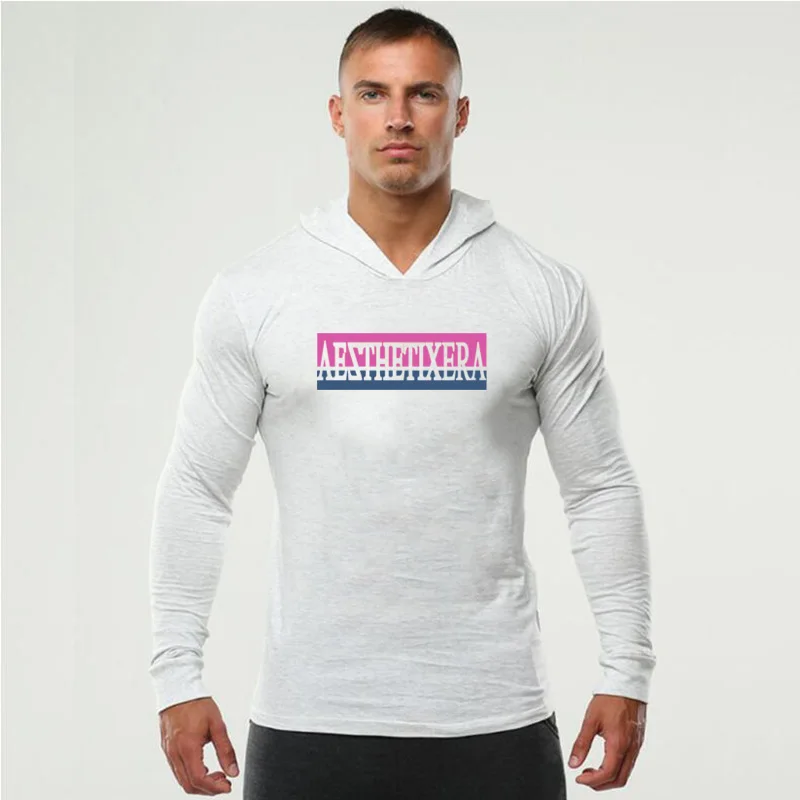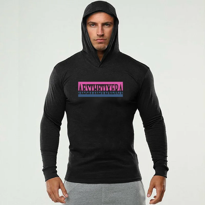 Мужская футболка с длинным рукавом и капюшоном, для фитнеса