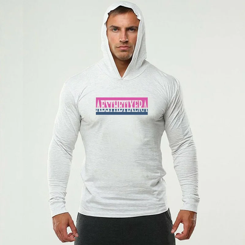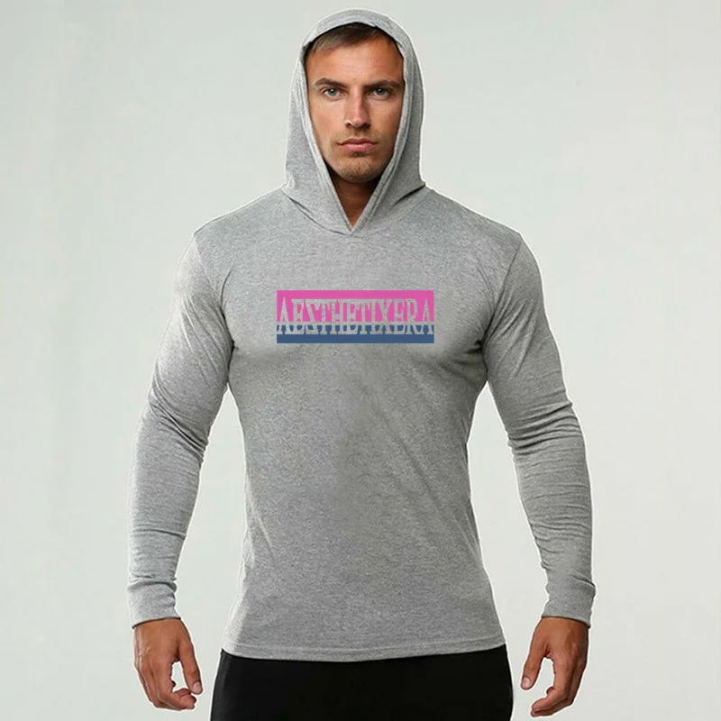 Бодибилдинг с длинным рукавом с капюшоном Футболка мужская осенний ...