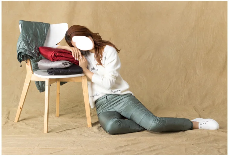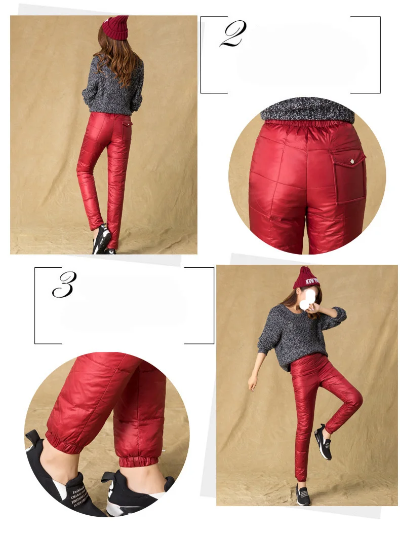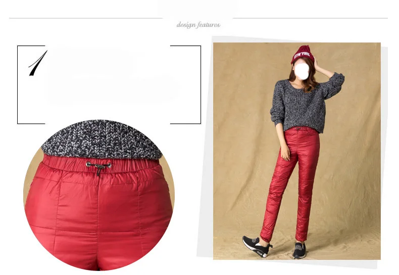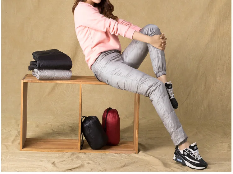 Повседневные брюки, теплые, женские, 100%, спортивные, зимние, эластичные, с высокой талией, с защитой из настоящего белого утиного пуха