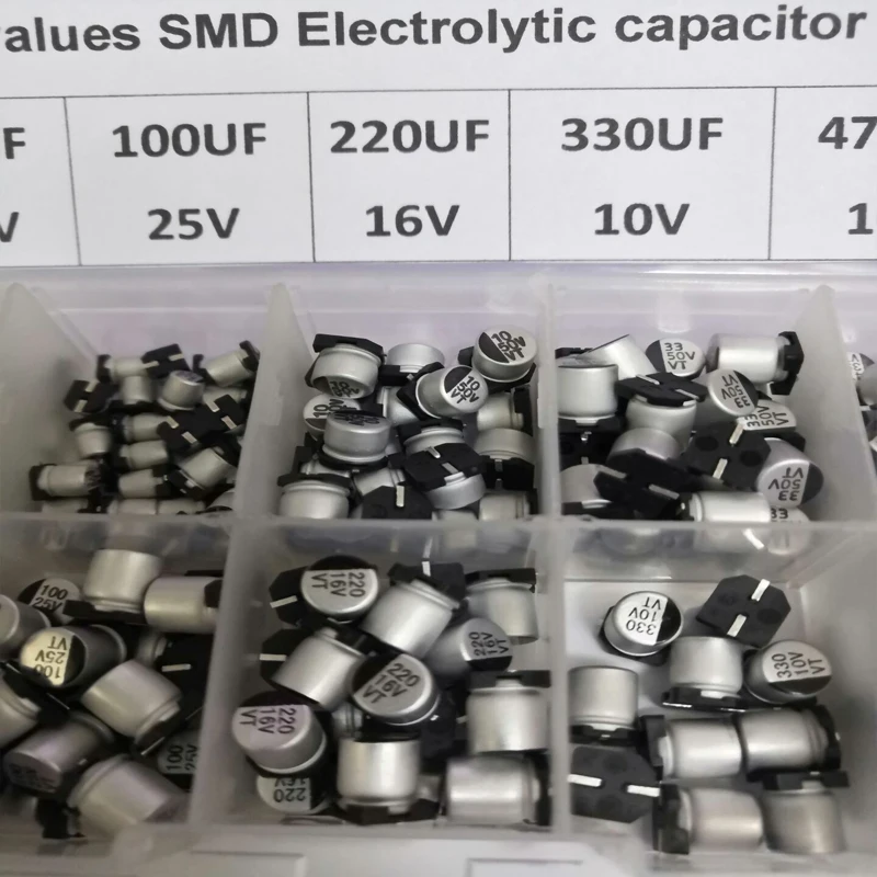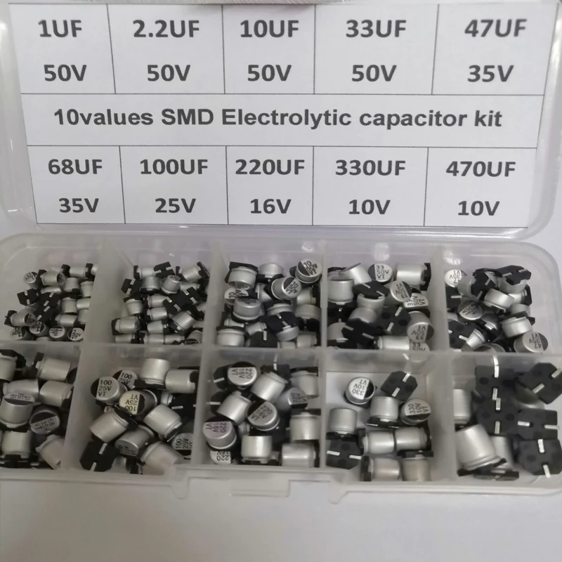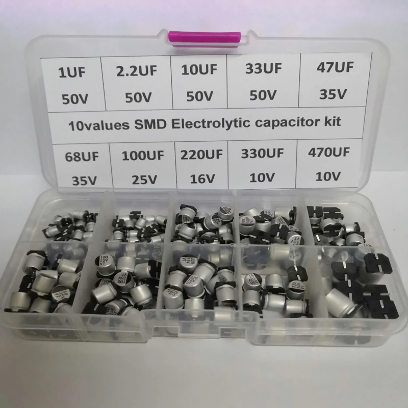 10 значений, 200 шт., электролитический конденсатор для поверхностного монтажа в ассортименте, 10 В 50 в мкФ 470 мкФ с футляром для хранения