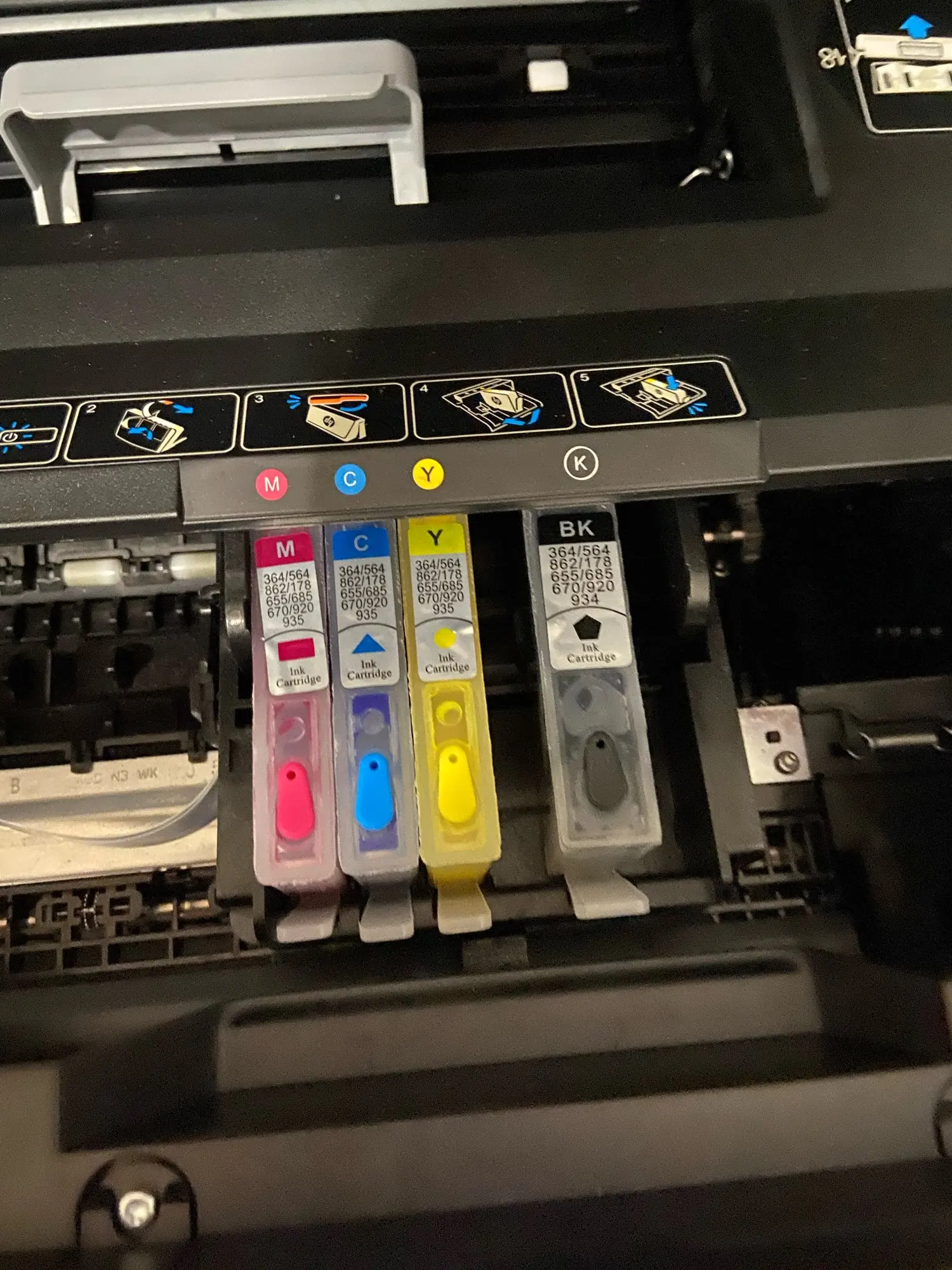 Все отлично. Принтер увидел все картриджи, заправил и все работает. но посылка запоздала, пришла через 74 дня. Я думаю это из-за COVID-19. Продавец хороший, продлил сам время защиты покупателя. Рекомендую.