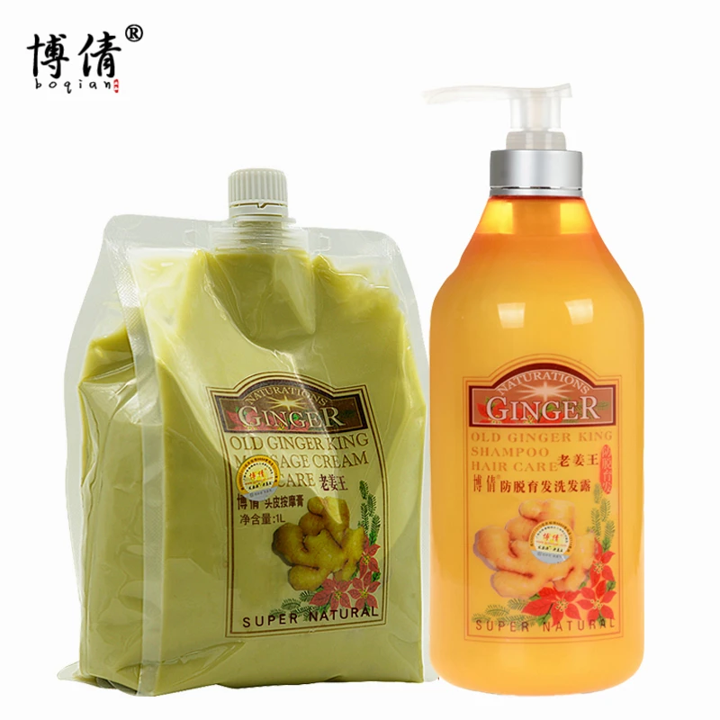 Шампунь для волос BOQIAN с имбирем, 500 мл + крем для массажа кожи головы, набор 1000 мл, контроль масла, рост волос, против выпадения волос, восстановление и уход за волосами