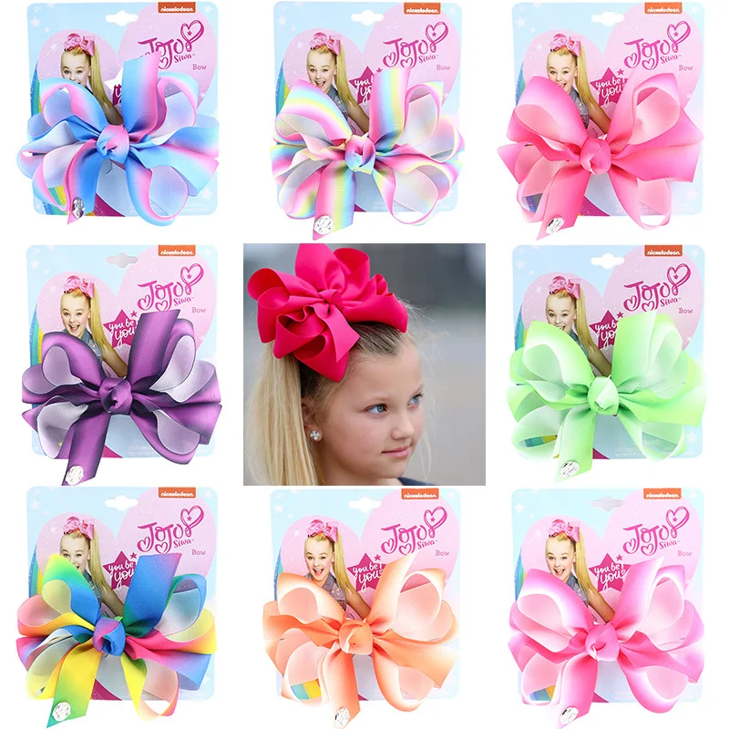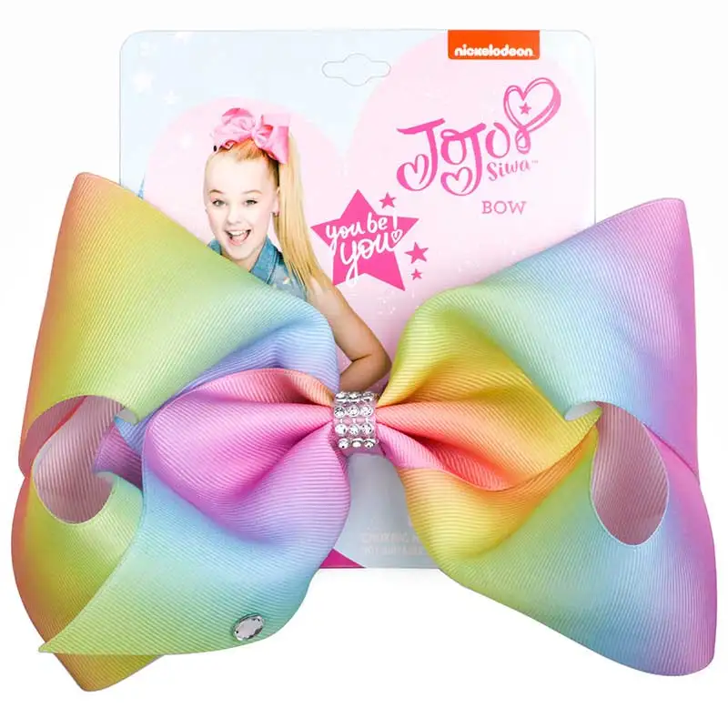 8 ''Jojo Siwa большие банты с зажимы типа «крокодил», детский стразы зажим для волос Cheer фирма Jojo Bow Grosgran аксессуары для волос, подарок на Рождество