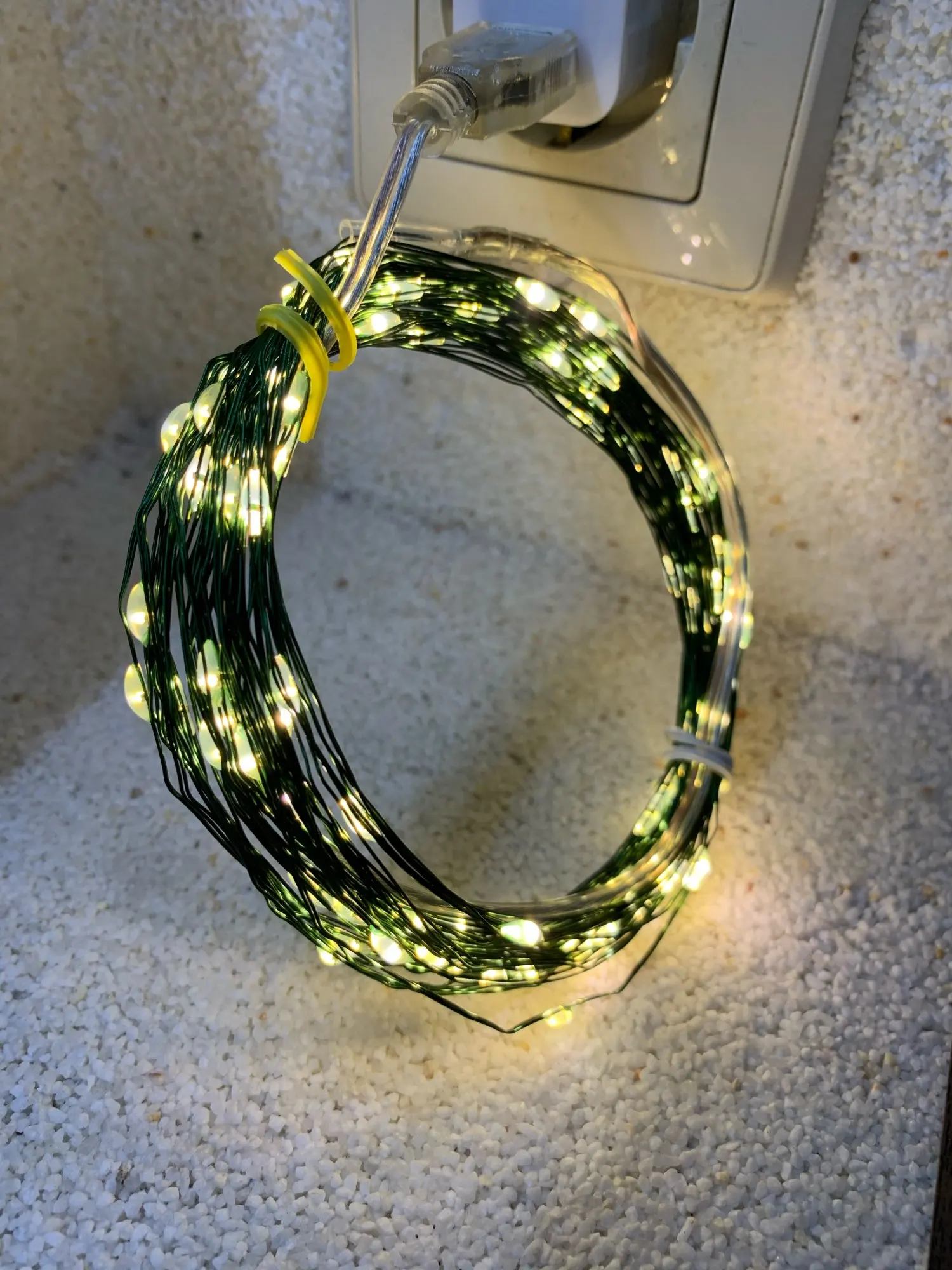 Великолепно! Гирлянда - проволочная, её можно сгибать как угодно и крепить. Запитывается от USB. Очень яркая. Буду брать ещё.