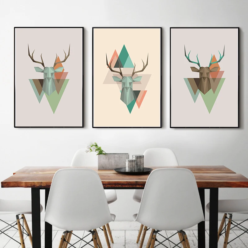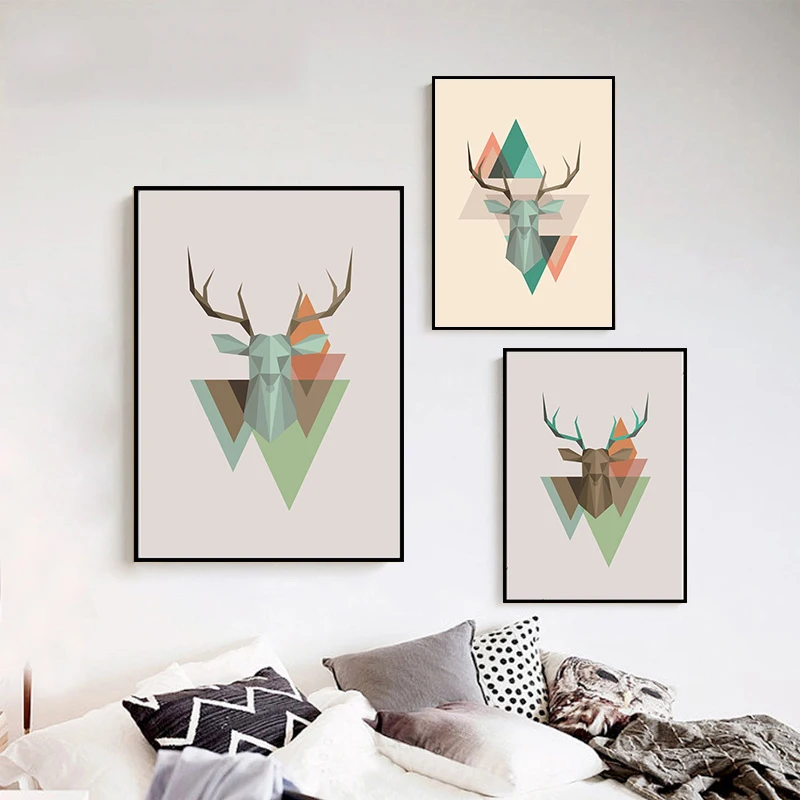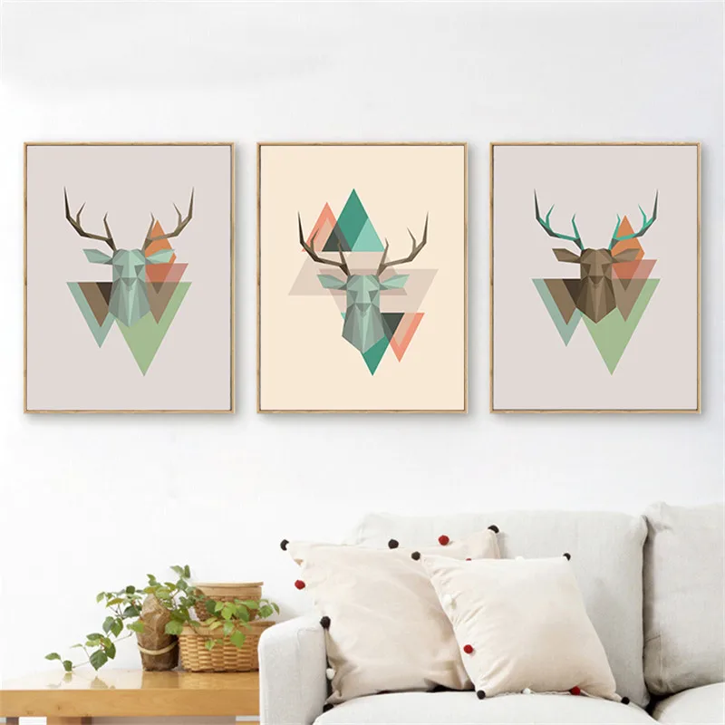Теплая желтая Скандинавская Картина на холсте Абстрактная картина в виде животного лося печать на стену домашний Декор Гостиная геометрический плакат Скандинавская живопись