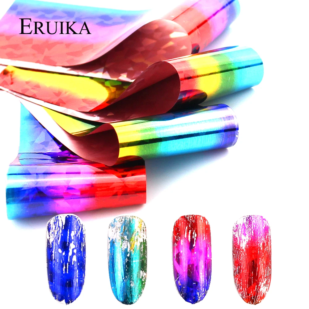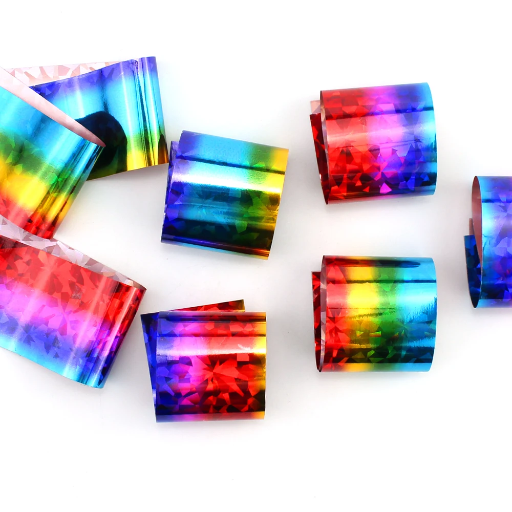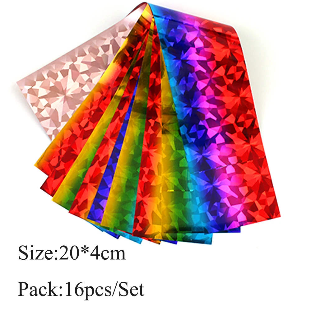 16 шт голографическая Радужная Фольга для ногтей, цветная переводная наклейка для ногтей, Слайдеры для творчества, украшения для маникюра