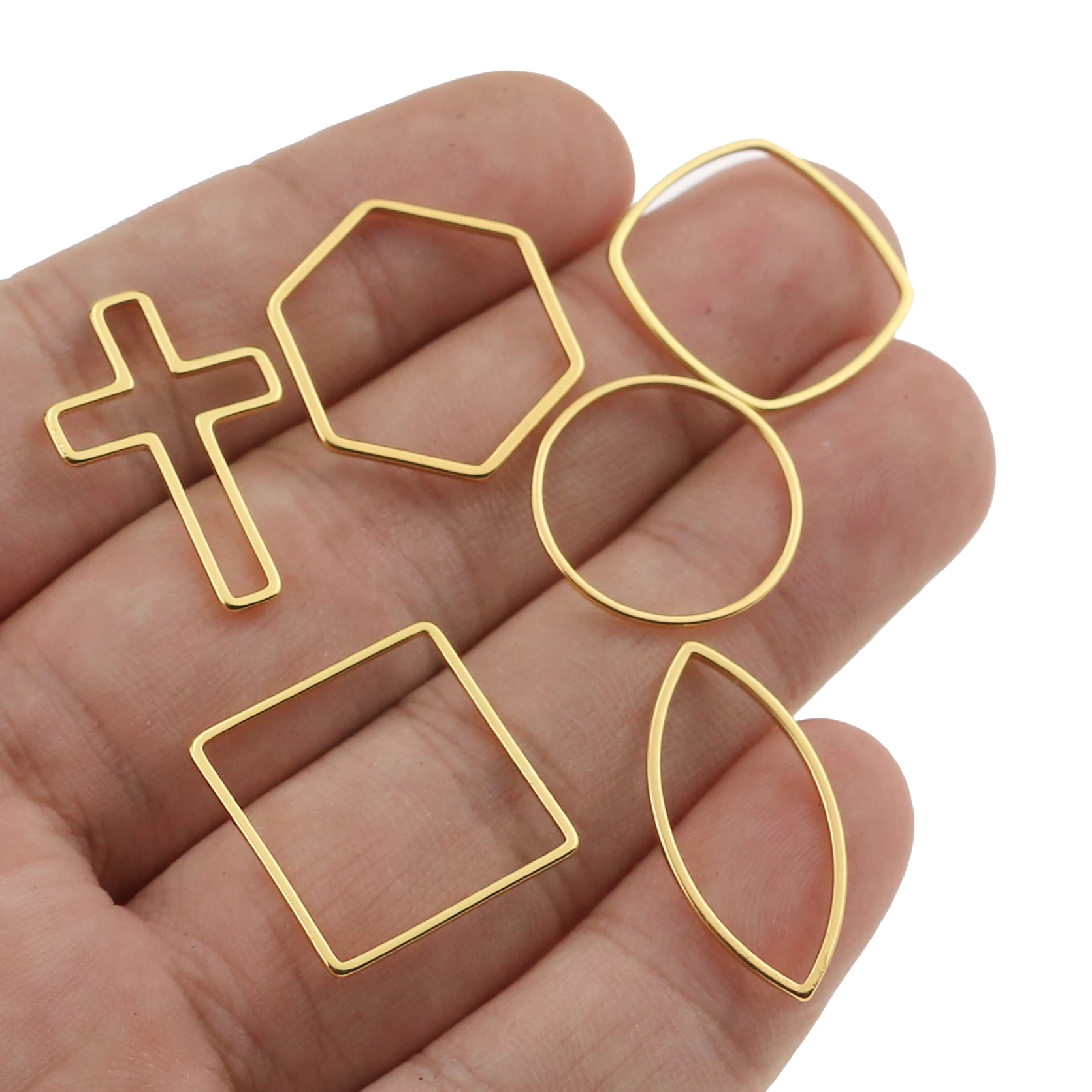 Имя:Aiovlo 10 шт./лот из нержавеющей стали геометрические полые рамки с рамкой для самостоятельного изготовления сережек подвески для рукоделия принадлежности для изготовления ювелирных изделий АксессуарыРазмер:Как показано