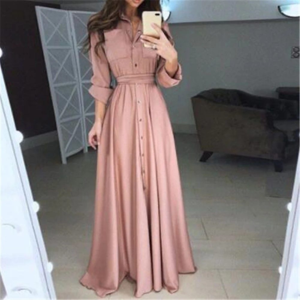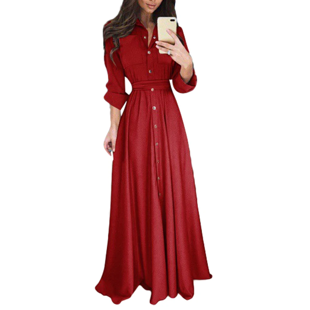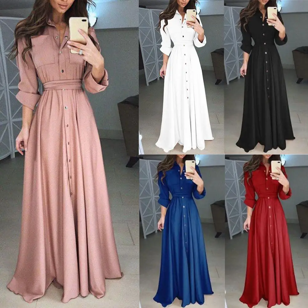 Сексуальное женское однобортное платье макси на пуговицах с длинным рукавом для танцев и вечеринок, 2019