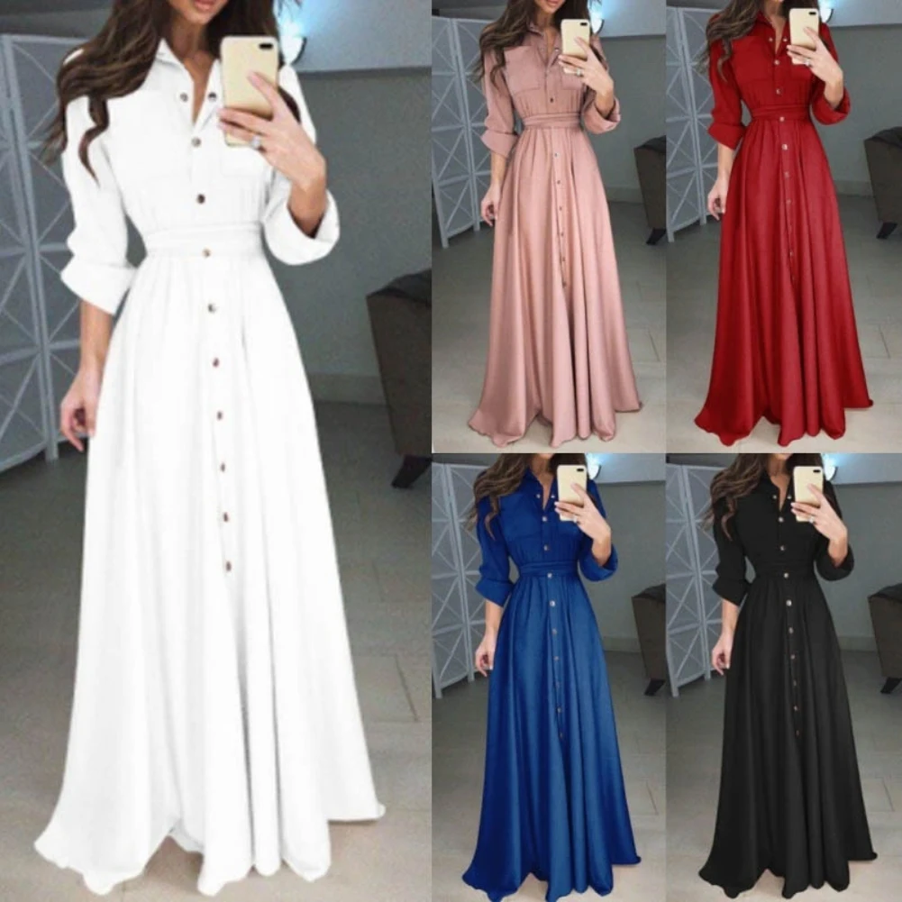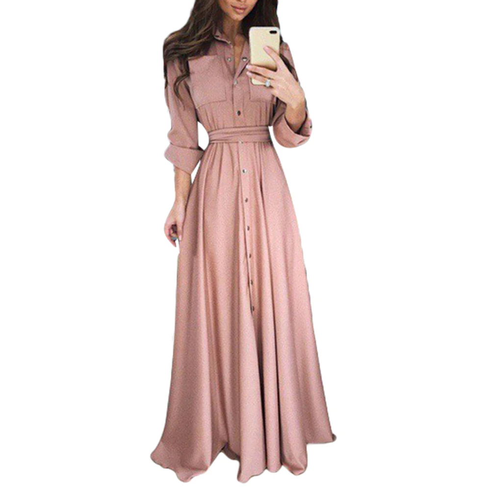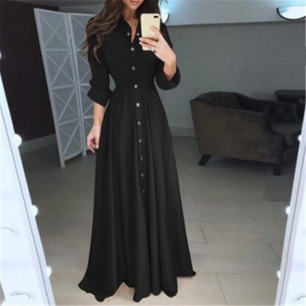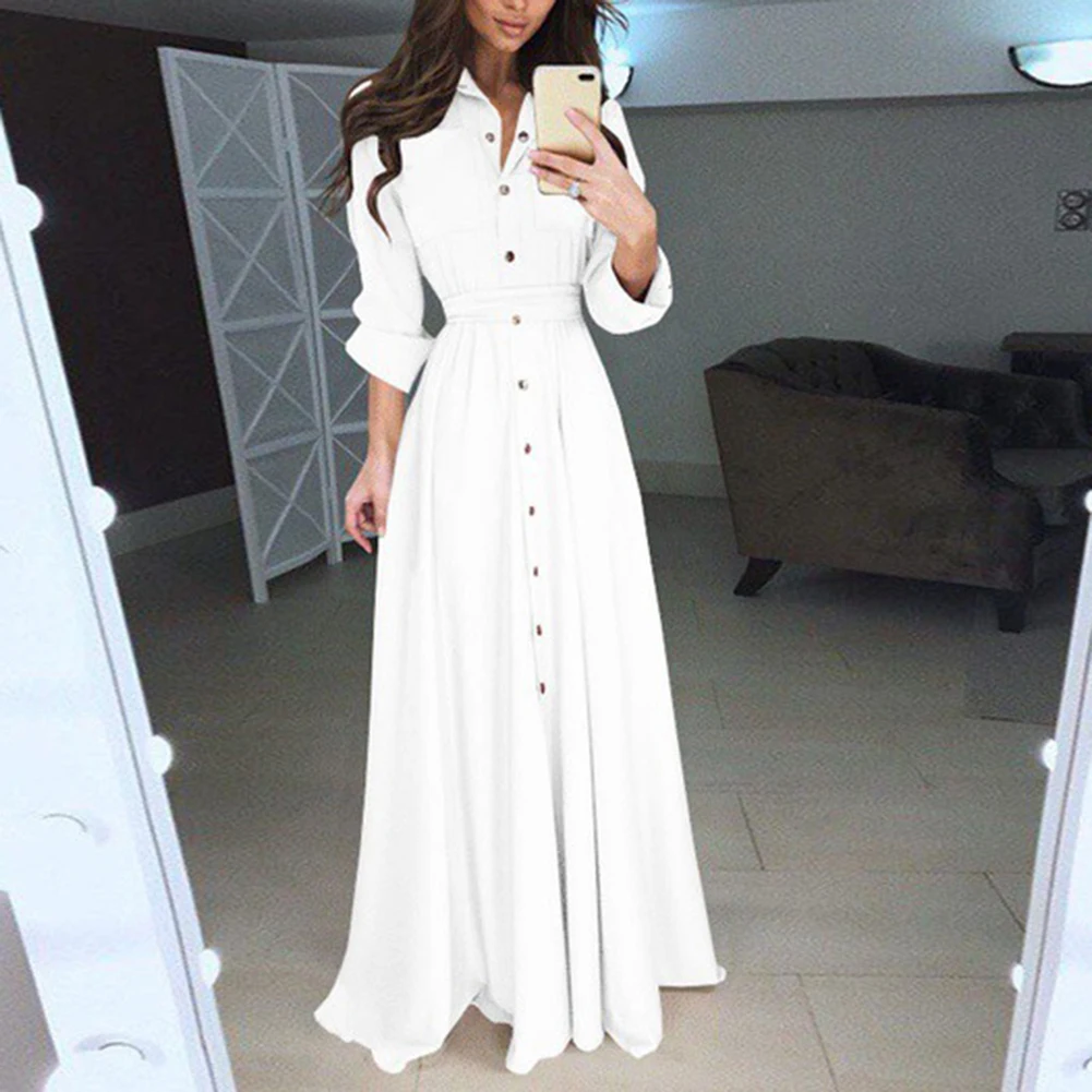 Сексуальное женское однобортное платье макси на пуговицах с длинным рукавом для танцев и вечеринок, 2019