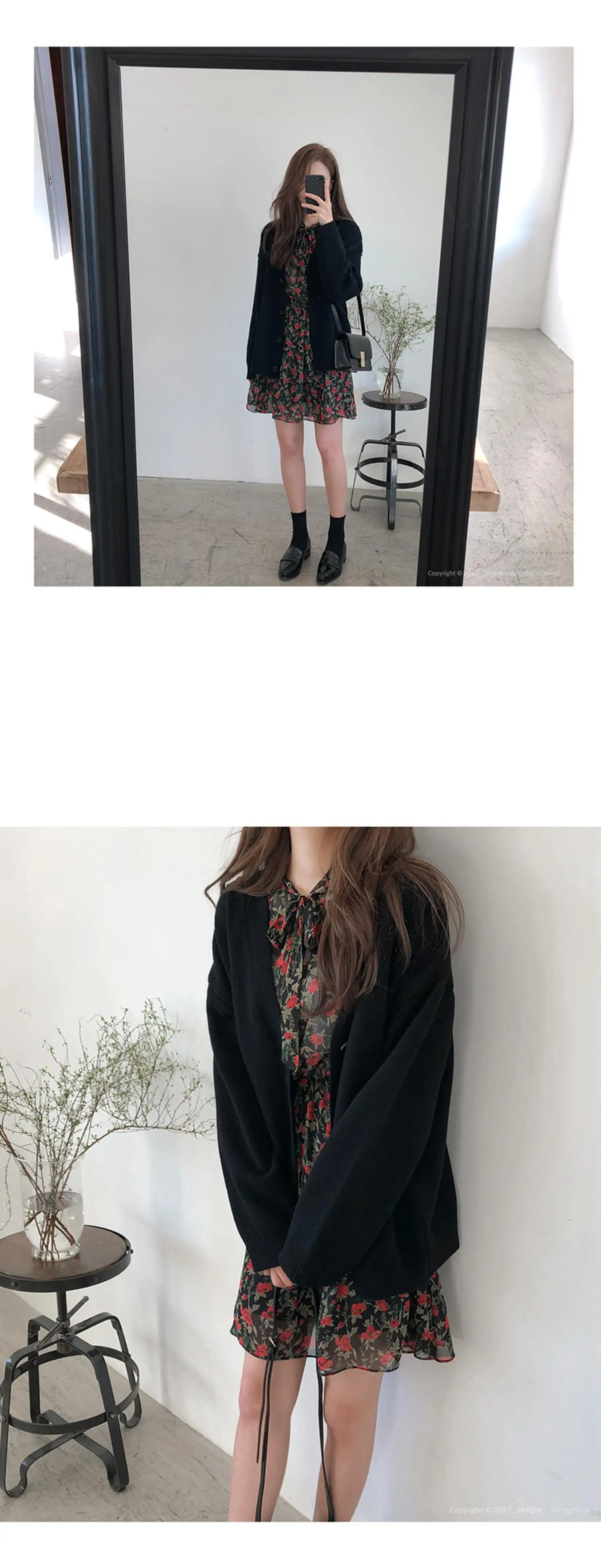 Женский трикотажный кардиган на пуговицах, черный/серый Кардиган с длинным рукавом и V-образным вырезом, 10719