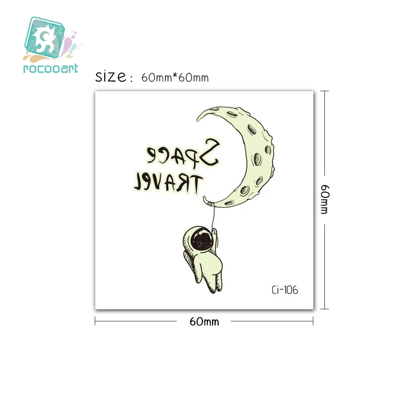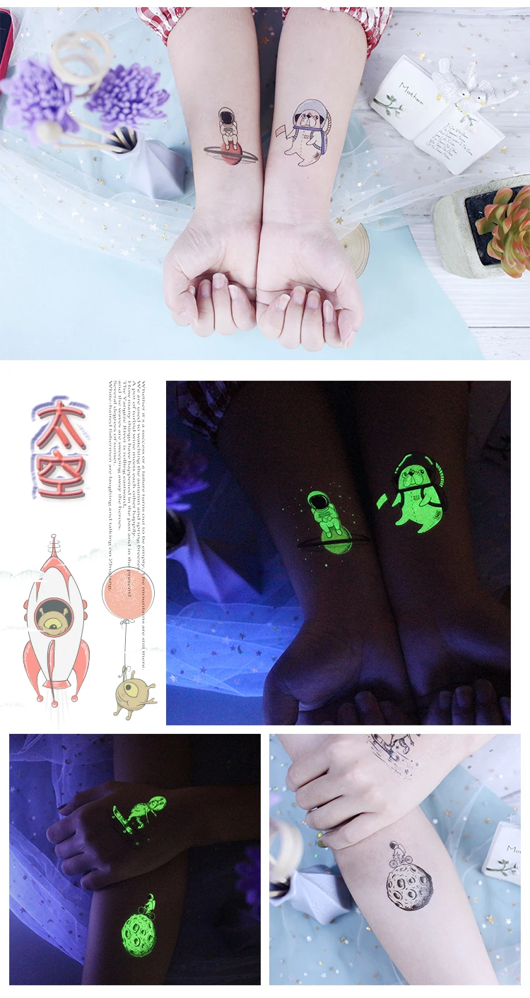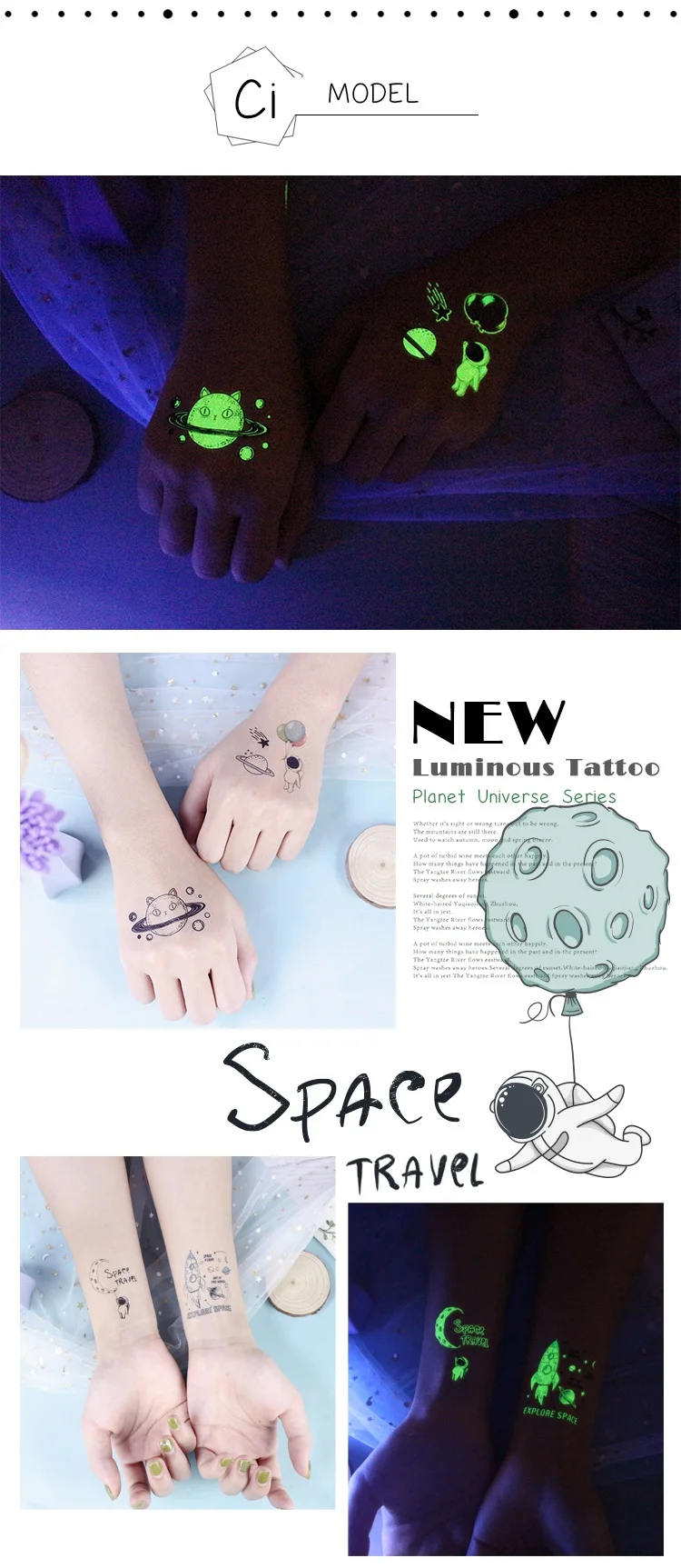 Rocooart маленькая татуировка, Светящиеся Татуировки, наклейки, Мультяшные Космические Планеты, поддельные татуировки для детей, светящиеся водонепроницаемые временные татуировки
