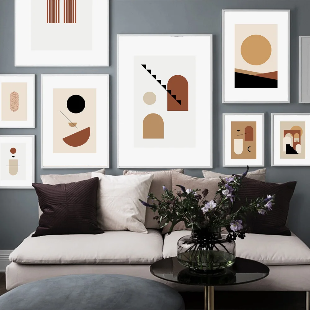 Абстрактная линия геометрические винтажные минималистичные скандинавские плакаты и принты настенная живопись на холсте настенные картины для декора гостиной