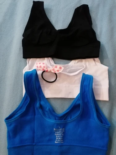Топы вообщем мне понравились, они не очень плотные, тонкие, но хорошо держат, на ог 88 чашку С и размер М и размер S подходит, размер М более свободный , S плотнее, при длительной носке будут появляться небольшие катышки, но они не очень заметны.