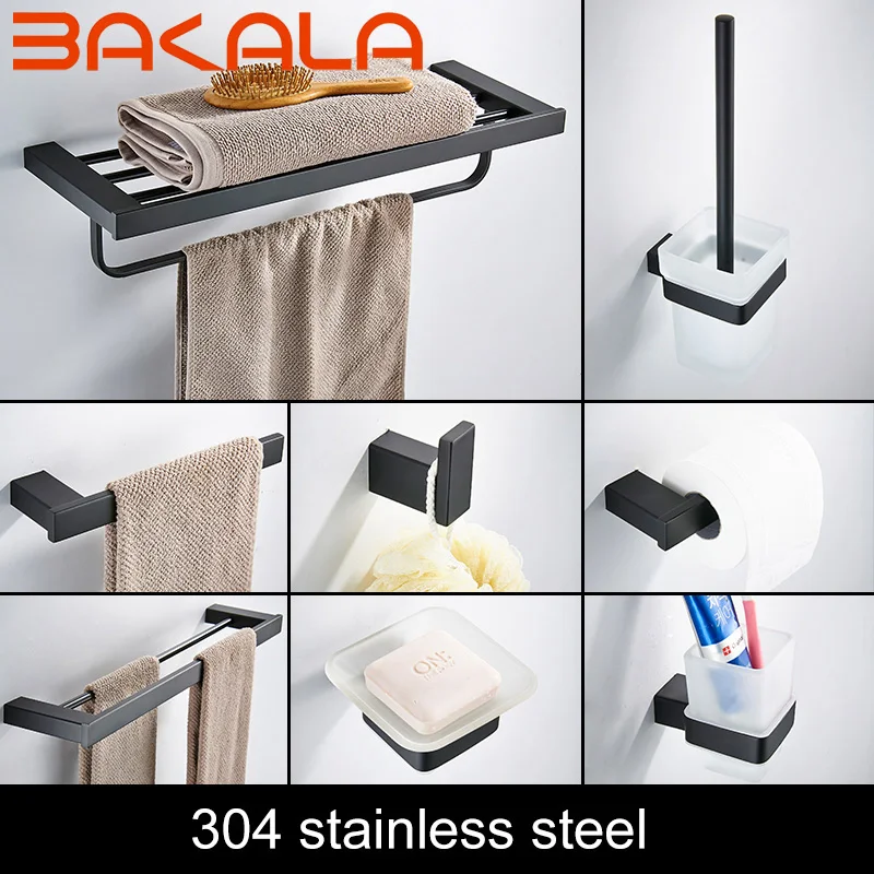 Набор принадлежностей для ванны, Полка для полотенец из нержавеющей стали, держатель рулонной бумаги, настенный держатель для зубных щеток, держатель для туалетных щеток черного цвета