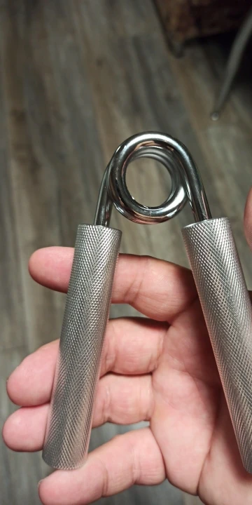 Неплохой эспандер. Мой старый, простенький, кажется детской игрушкой по сравнению с этим Берите 100 для начала, не переоценивайте свои силы! Ручки немного скользкие, особенно когда руки вспотевшие. Нужно что то надевать на них.. Поскрипывает. Имеется пару незначительных царапок.