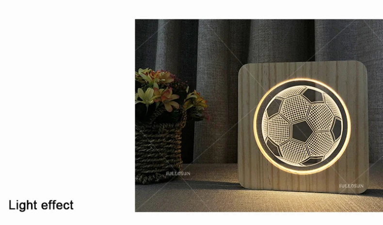 СВЕТОДИОДНЫЙ ночник в форме футбольного мяча, деревянный USB-светильник с вилкой для подзарядки, теплый ночник, украшение стола, атмосферный светильник