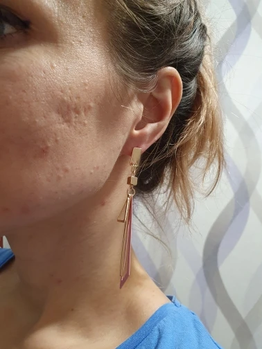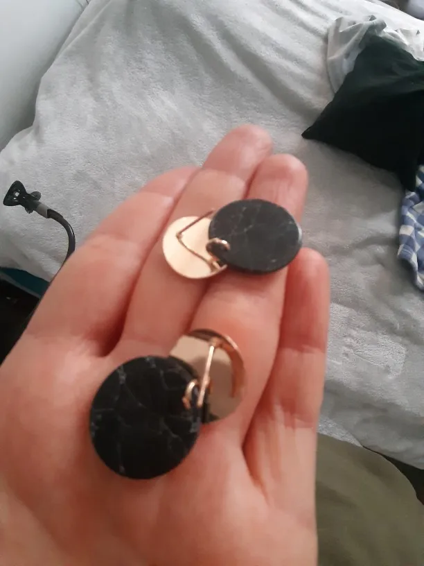 Серьги точно такие как на фотографии, не тяжелые, стильные. Я довольна полностью !