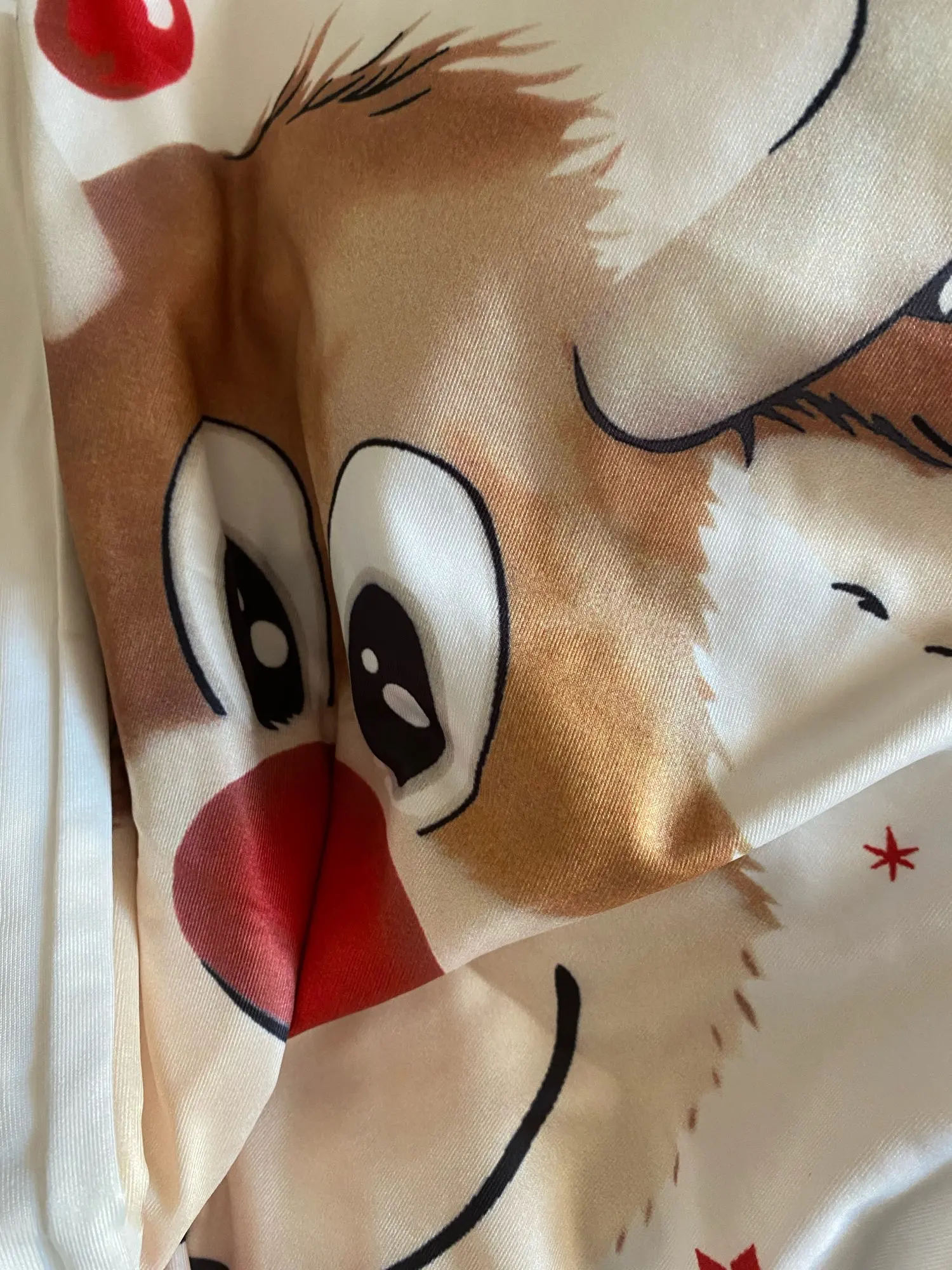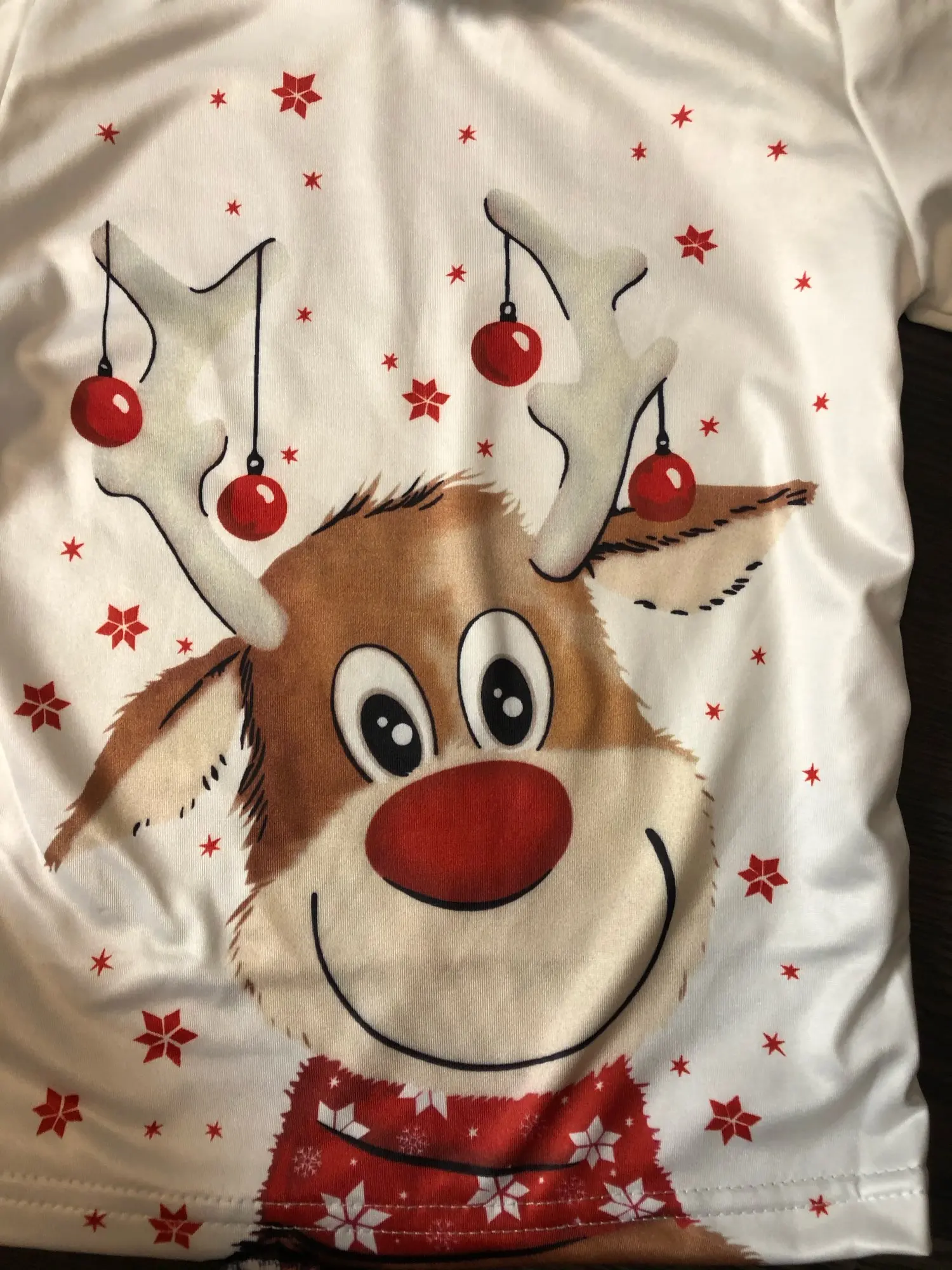 Ткань приятная, хоть и синтетика, следовательно липнет к коже. Брала для фотографий под елкой, для этой цели нормально. Использовать как пижаму думаю будет некомфортно. Размер 2Т велик для 1,5г девочки.