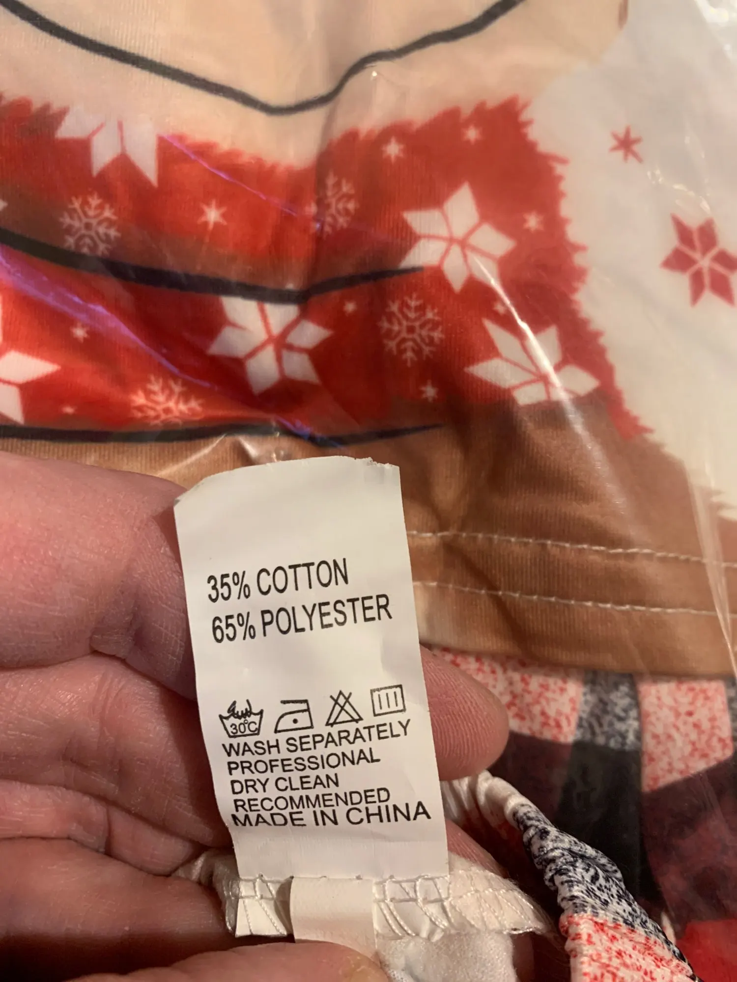 Пижама хорошая, синтетика, но приятная к телу. При стирке не полиняла вообще. Что меня приятно удивило. Покупала два коплекта на НГ. Один в полном порядке, а второй - с черной полоской на джемпере. Полоска не отстирывается, какой-то брак. Спор открывать не буду, так как это одежда для дома. Но немножко огорчилась. В остальном я доовольна. Заказ пришел за несколько дней, мы успели получить его до НГ. Спасибо!