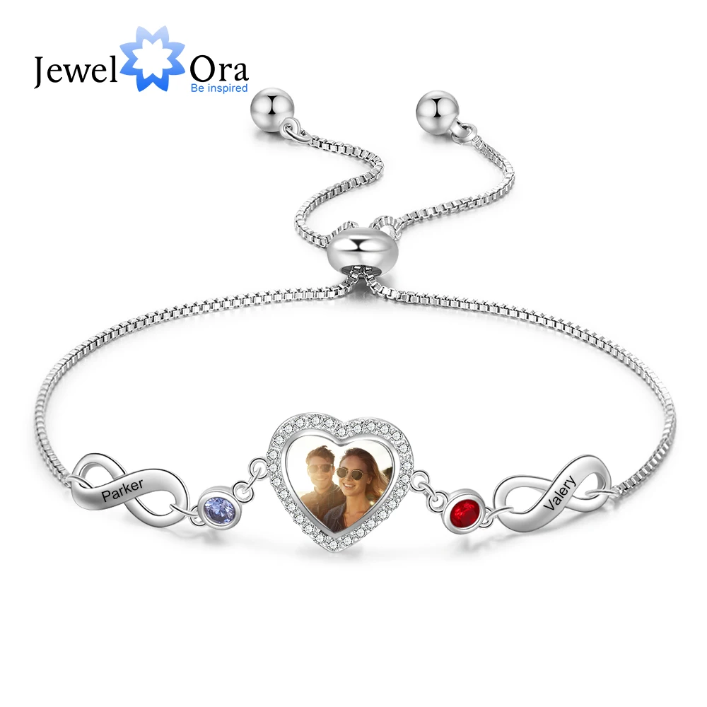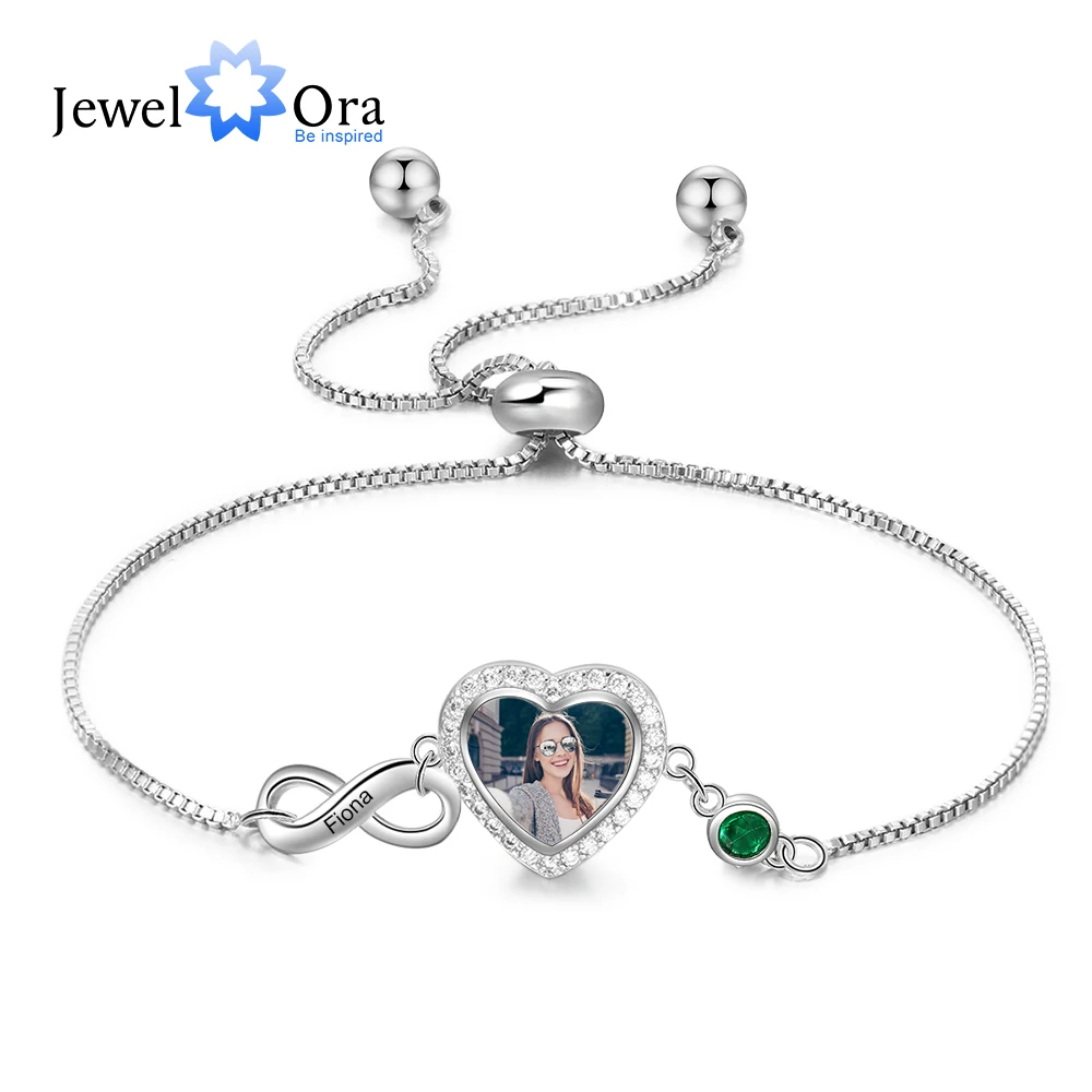 JewelOra персонализированные Сердце Фото Бесконечность браслет по индивидуальному заказу камень рождения гравировка...