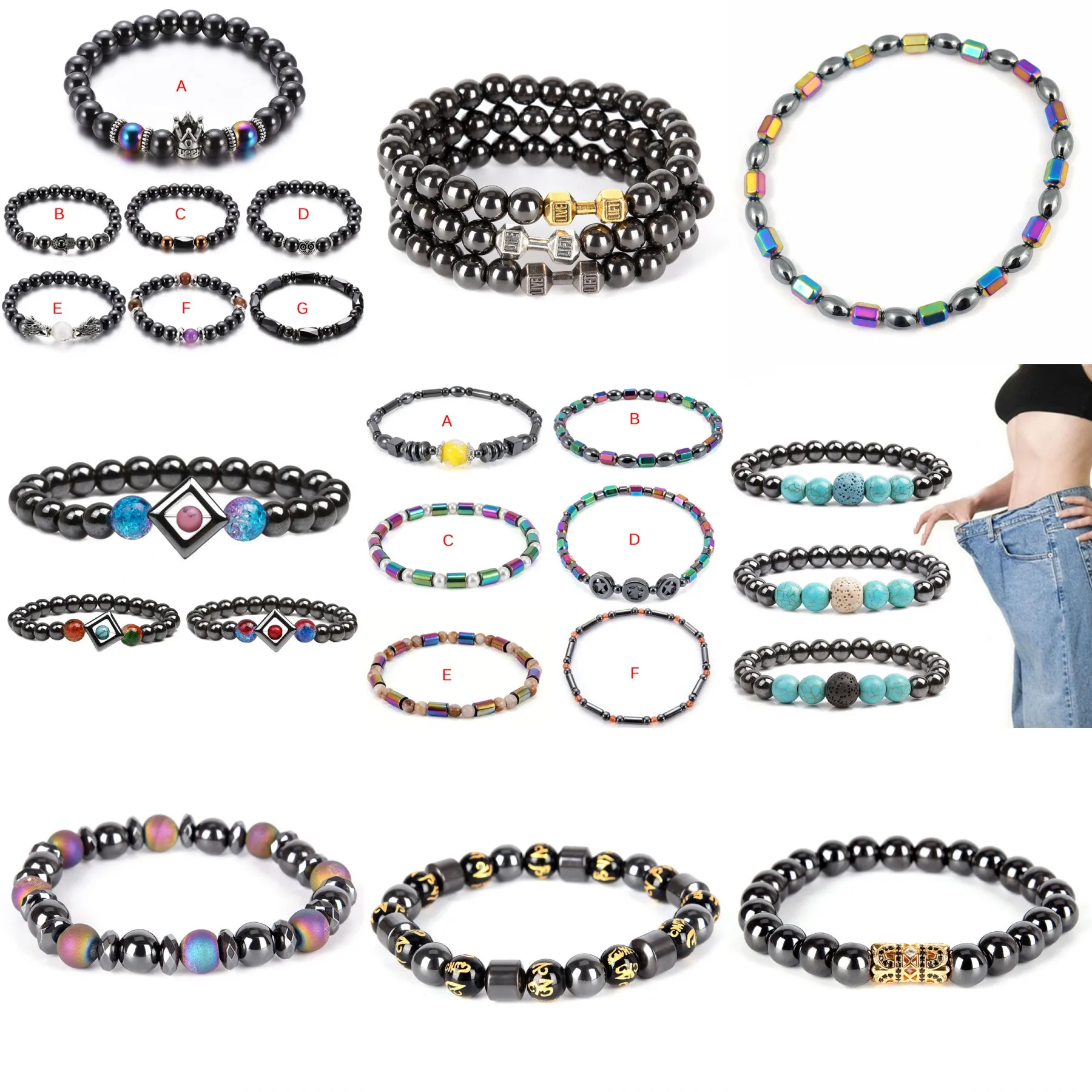 Браслет для похудения, 22 стиля, Круглый, магнитный, для лечения камня, для похудения, ручная цепочка, гематит, растягивающийся, браслет, ювелирные изделия, здоровье
