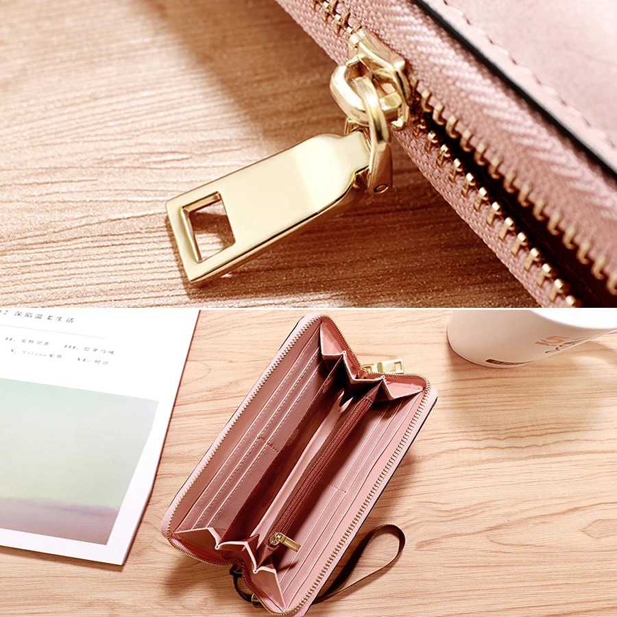 Длинный кожаный женский кошелек, Женский кошелек, роскошный бренд, винтажный большой женский кошелек, Женский кошелек для карт на молнии, монета, портмоне