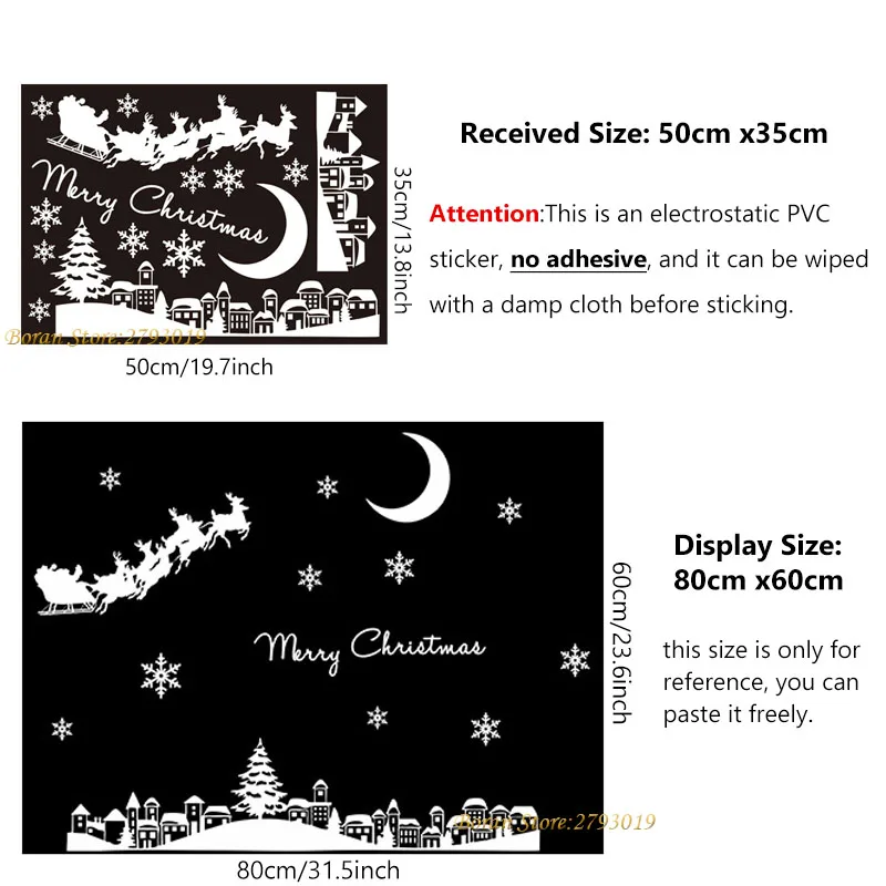Рождественская луна ночь электростатические наклейки Снежинка Лось Стекло окно рождественские наклейки на стену декоративный дизайн Декор домашние наклейки