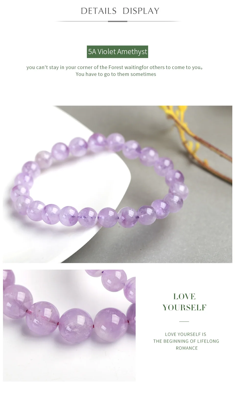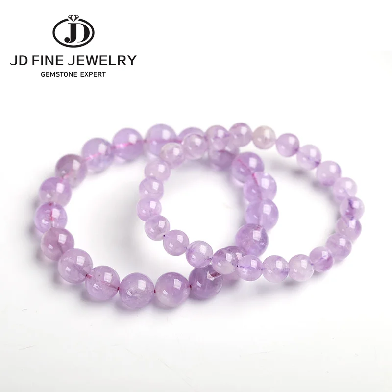 Женский браслет из драгоценных камней JD, растягивающийся браслет с натуральными гранями и круглыми аметистами, энергия светло-фиолетового цвета, подарок на Рождество