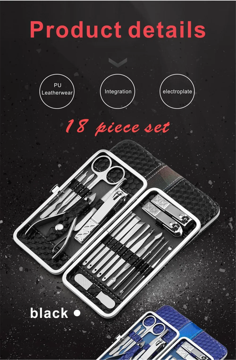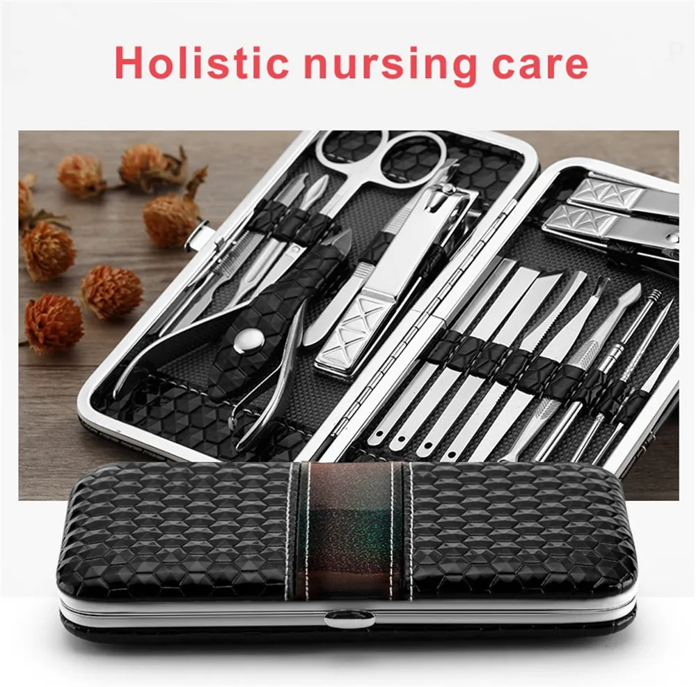 Набор инструментов для педикюра, 21 в 1, из нержавеющей стали профессиональные кусачки для маникюра, кусачки для ног, коробка для ухода за пальцами ног