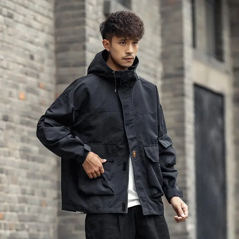 Мужская куртка с капюшоном и длинным рукавом, модная повседневная большая свободная куртка в стиле ретро, весна-осень 2020