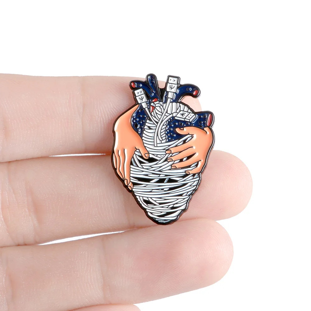 Эмалированная булавка в форме белого сердца, кабель для передачи данных, брошь в форме сердца, джинсы, рубашки, сумки, ювелирное изделие в форме сердца, подарок для друзей, мужчин, женщин, мужчин