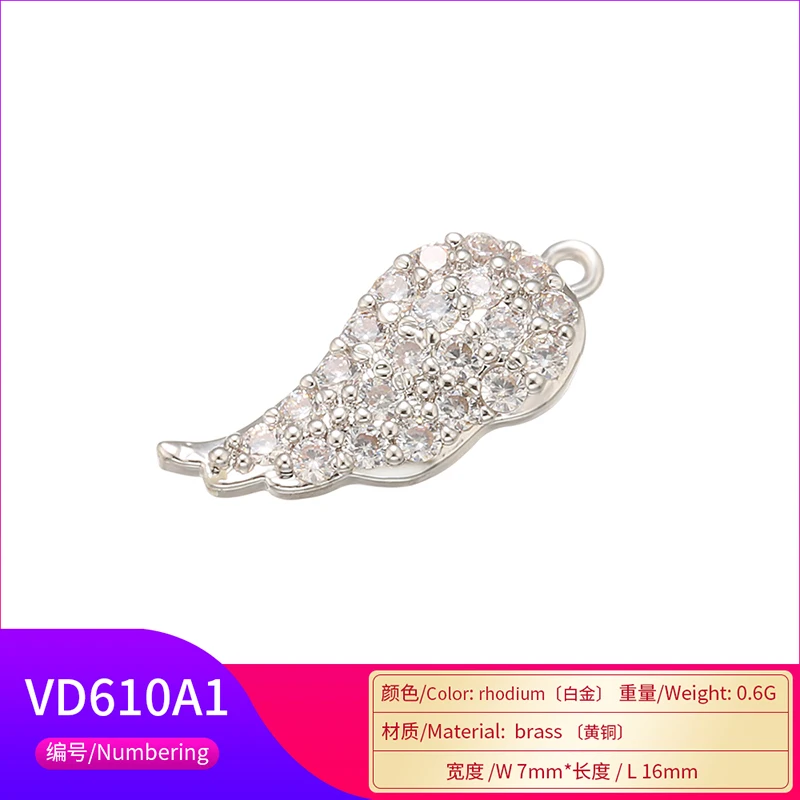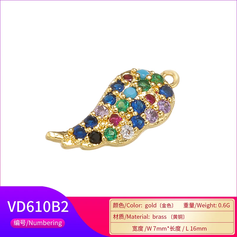 ZHUKOU 7x16 мм латунный Кристалл Маленькое крыло Подвеска для женщин ожерелье серьги браслет DIY Ювелирные изделия Аксессуары Модель: VD610